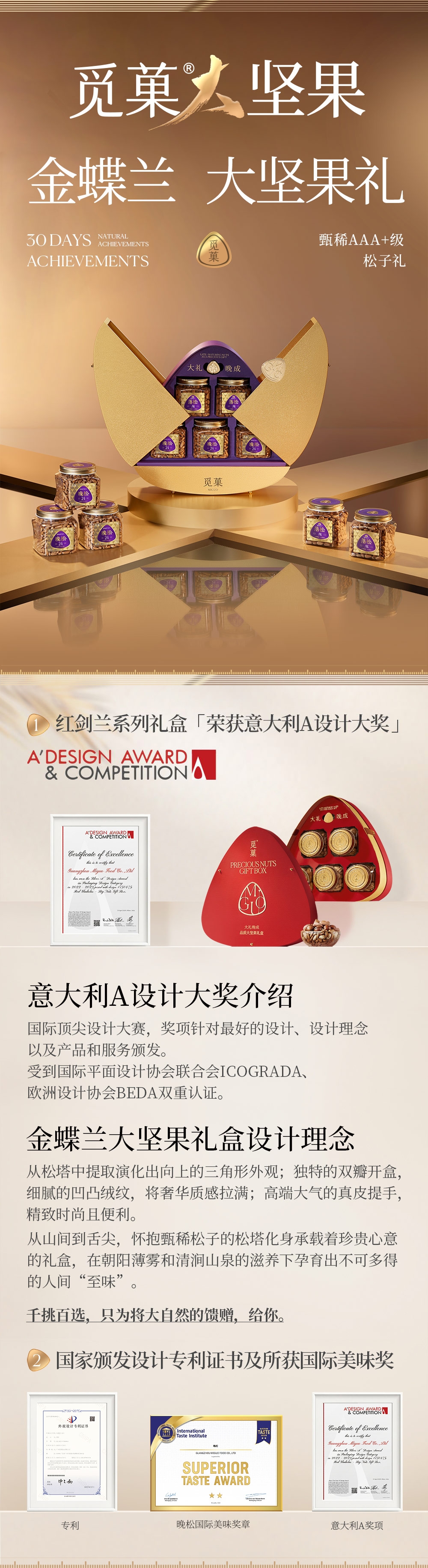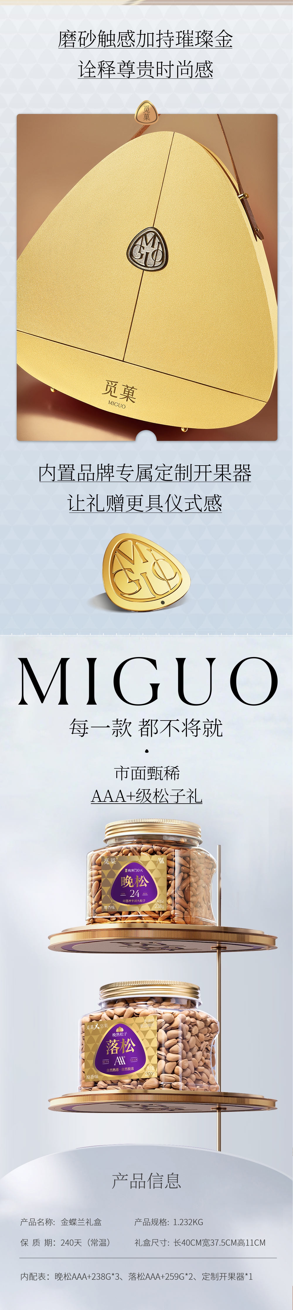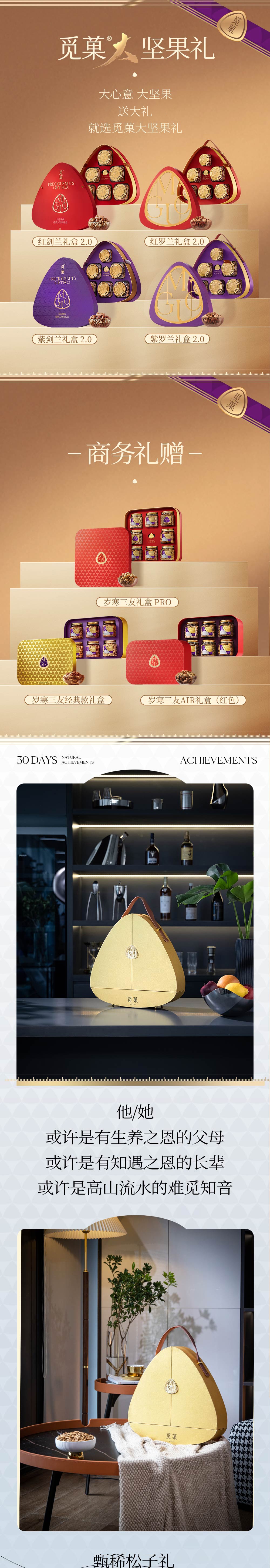 内含甄稀AAA+等级阿富汗手剥松子;独特双瓣开盒设计,仪式感十足;细腻凹凸绒纹搭配真皮提手,精致时尚