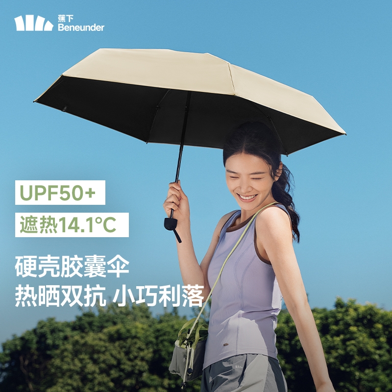 配置清单:蕉下五折黑胶防晒伞BM663 蕉下磁吸手持卡片风扇EE534 高弹防晒袖套ES370