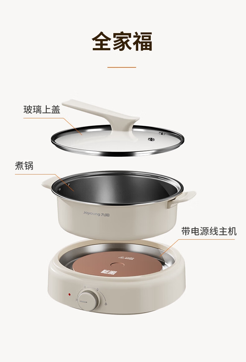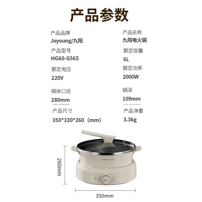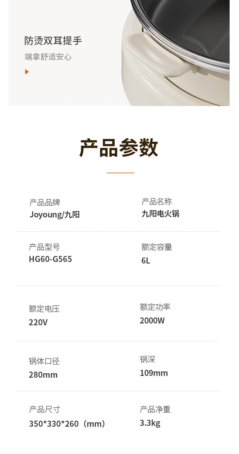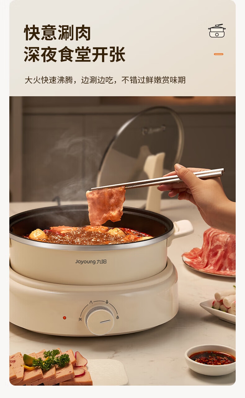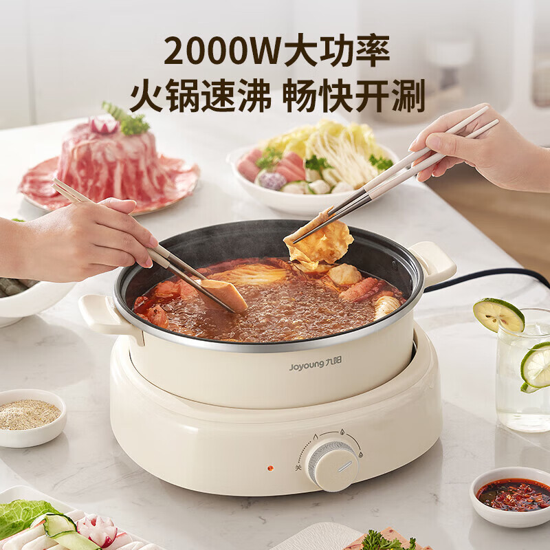 2000W秒涮猛火,开锅不久等;6升大容量,109mm深锅畅快涮;分体可拆好清洗,锅体可浸泡一冲即净