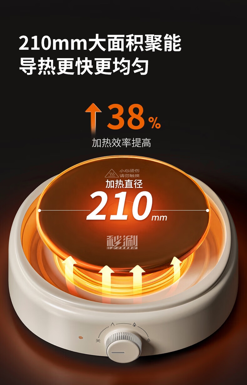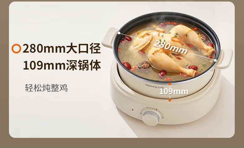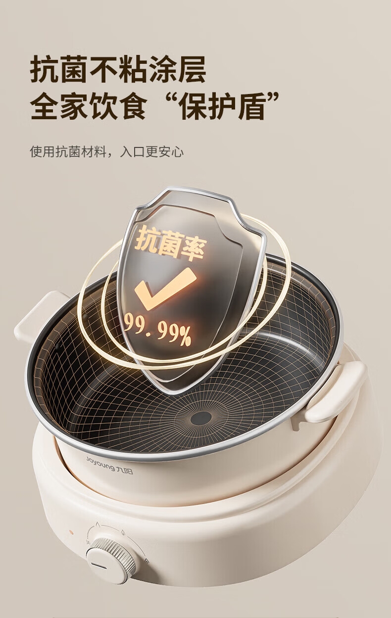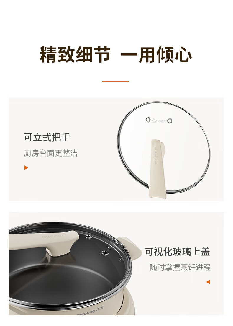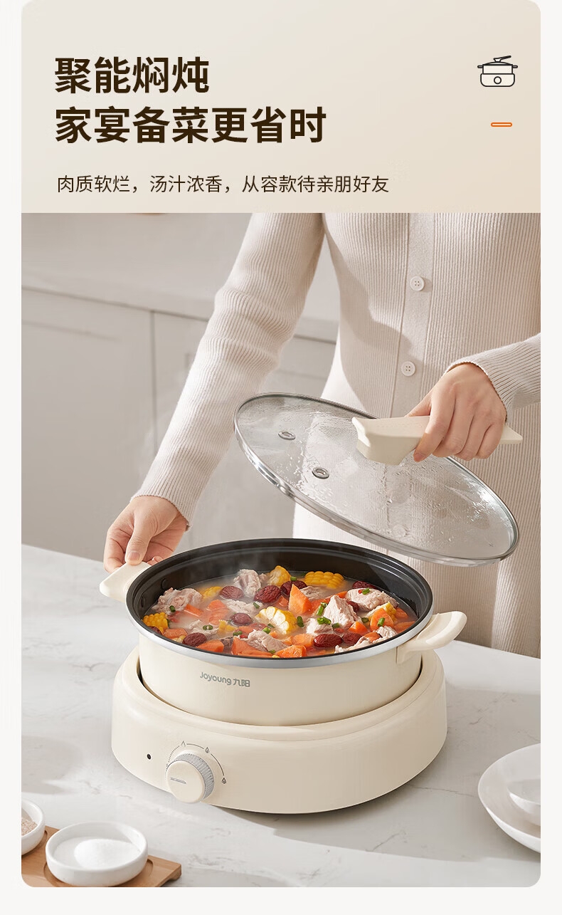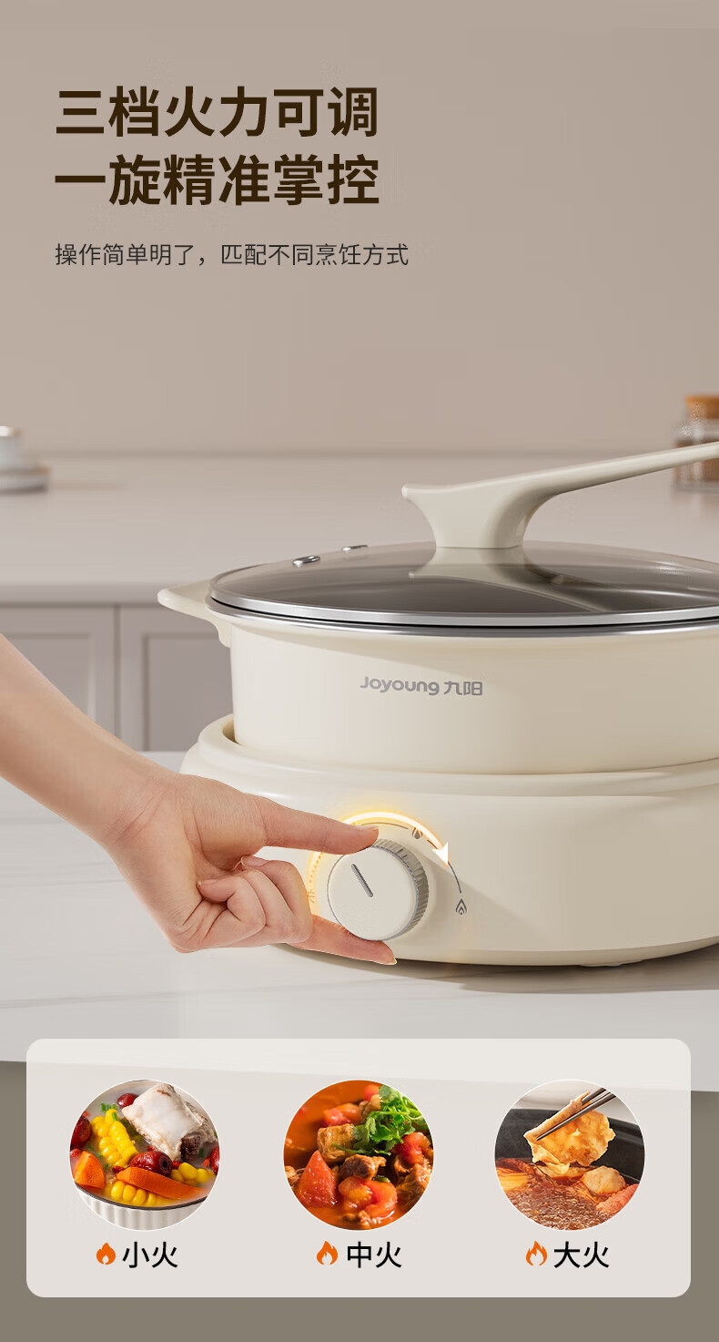 2000W秒涮猛火,开锅不久等;6升大容量,109mm深锅畅快涮;分体可拆好清洗,锅体可浸泡一冲即净