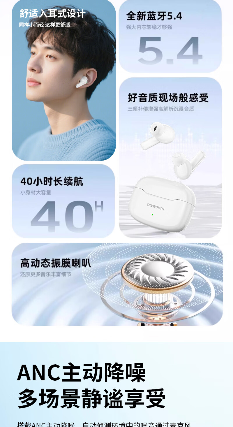特色功能:主动降噪 通话降噪 防水 防汗 超长续航