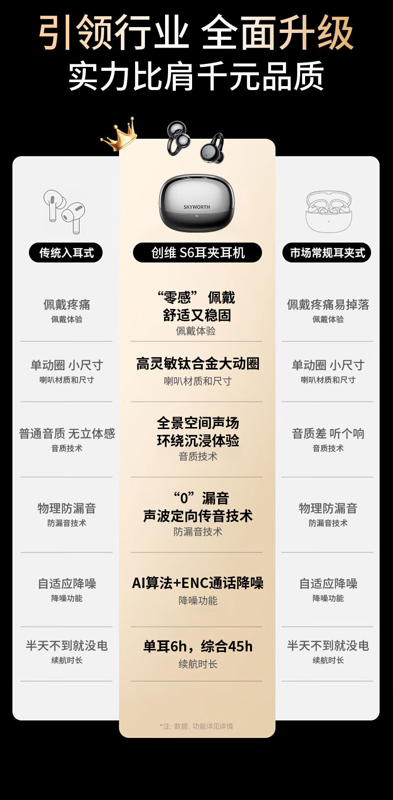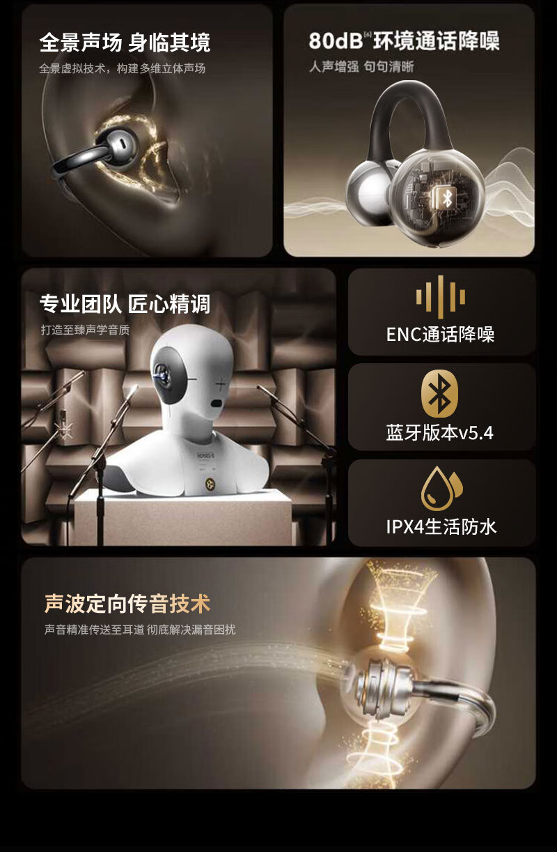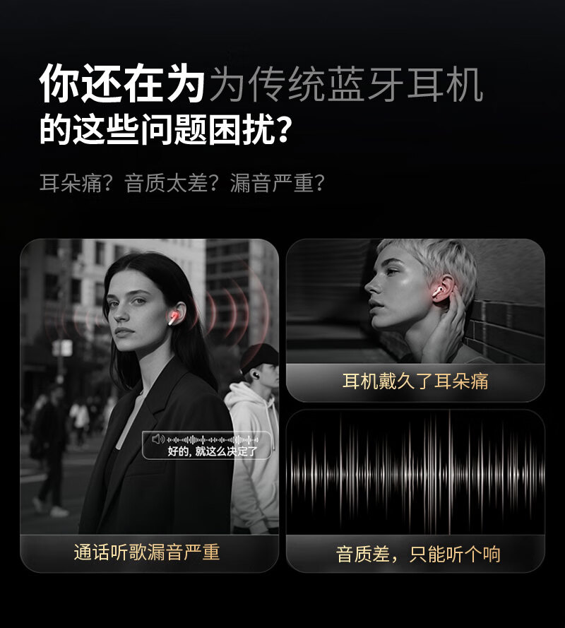 无感佩戴;超长续航Type-C;空间环绕音