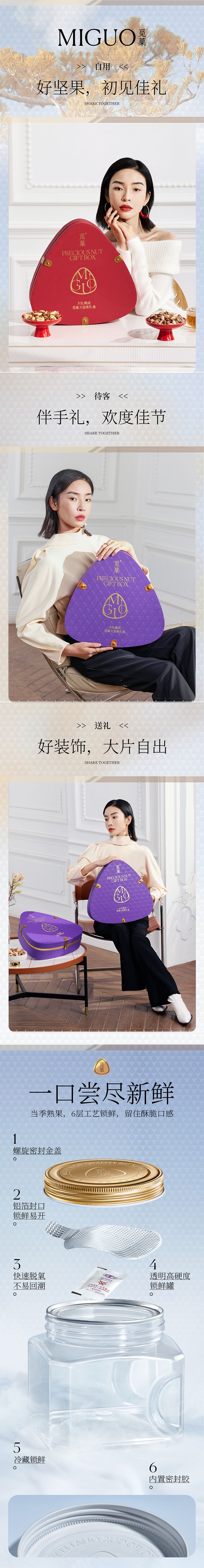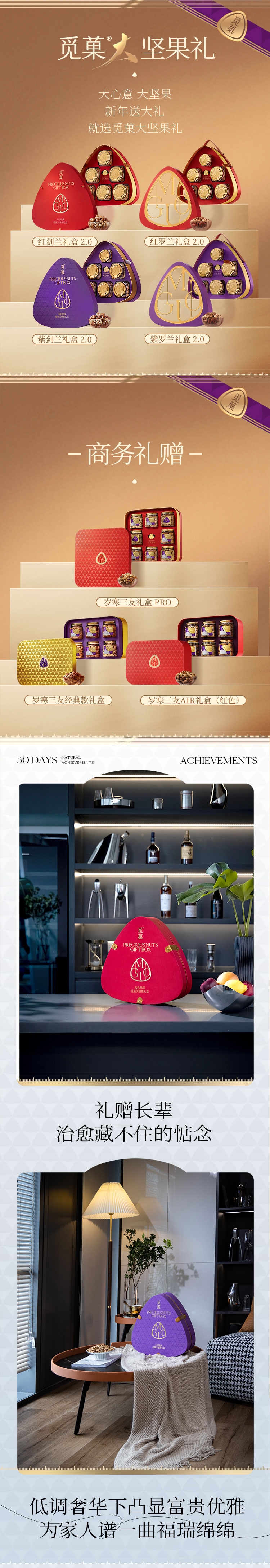 高品质大坚果礼盒 极致性价比;坚果独有的口感和香气,让您回味无穷;每一颗都经过精心挑选,保证新鲜和品质