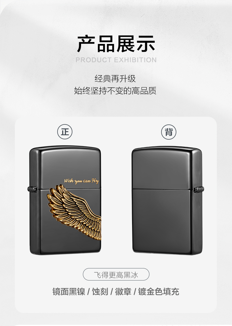 精雕细琢;黑冰机身 镀金填充;冰面镀黑镍工艺,立体精致羽翼徽章