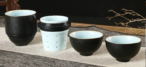 黑珍珠釉旅行茶具套装快客杯