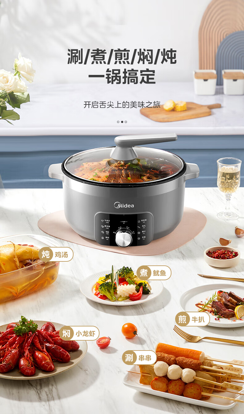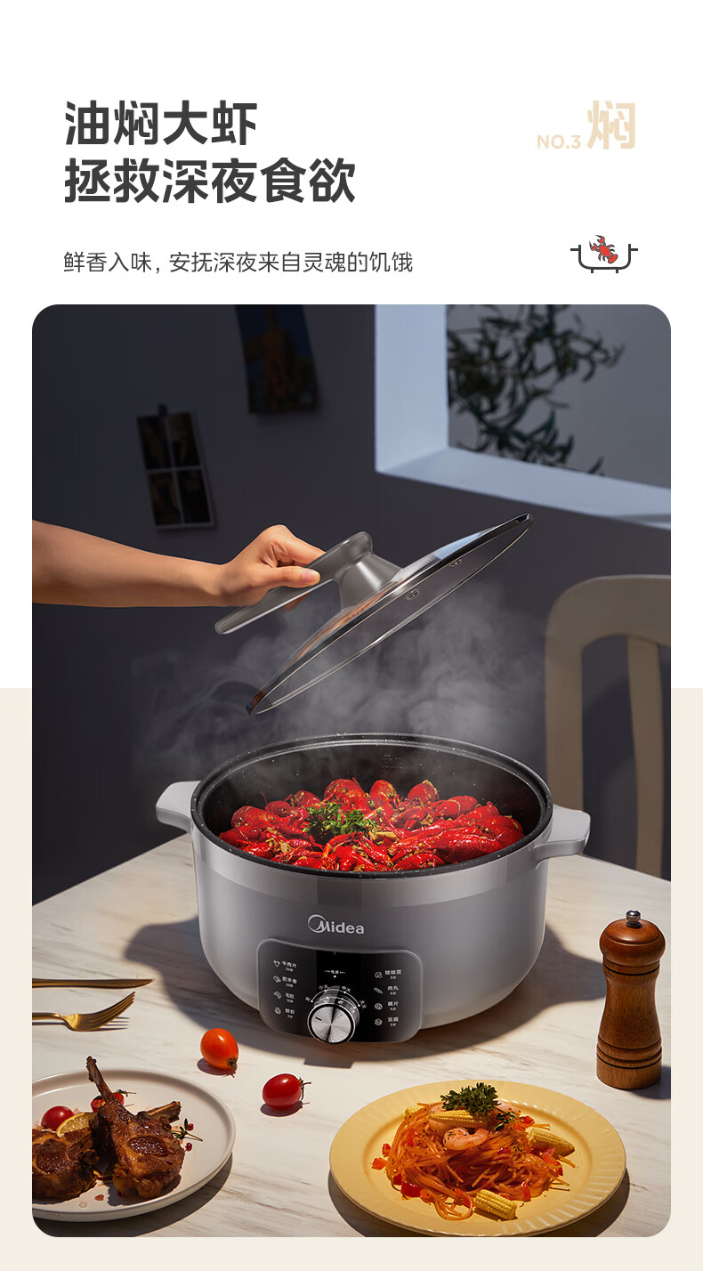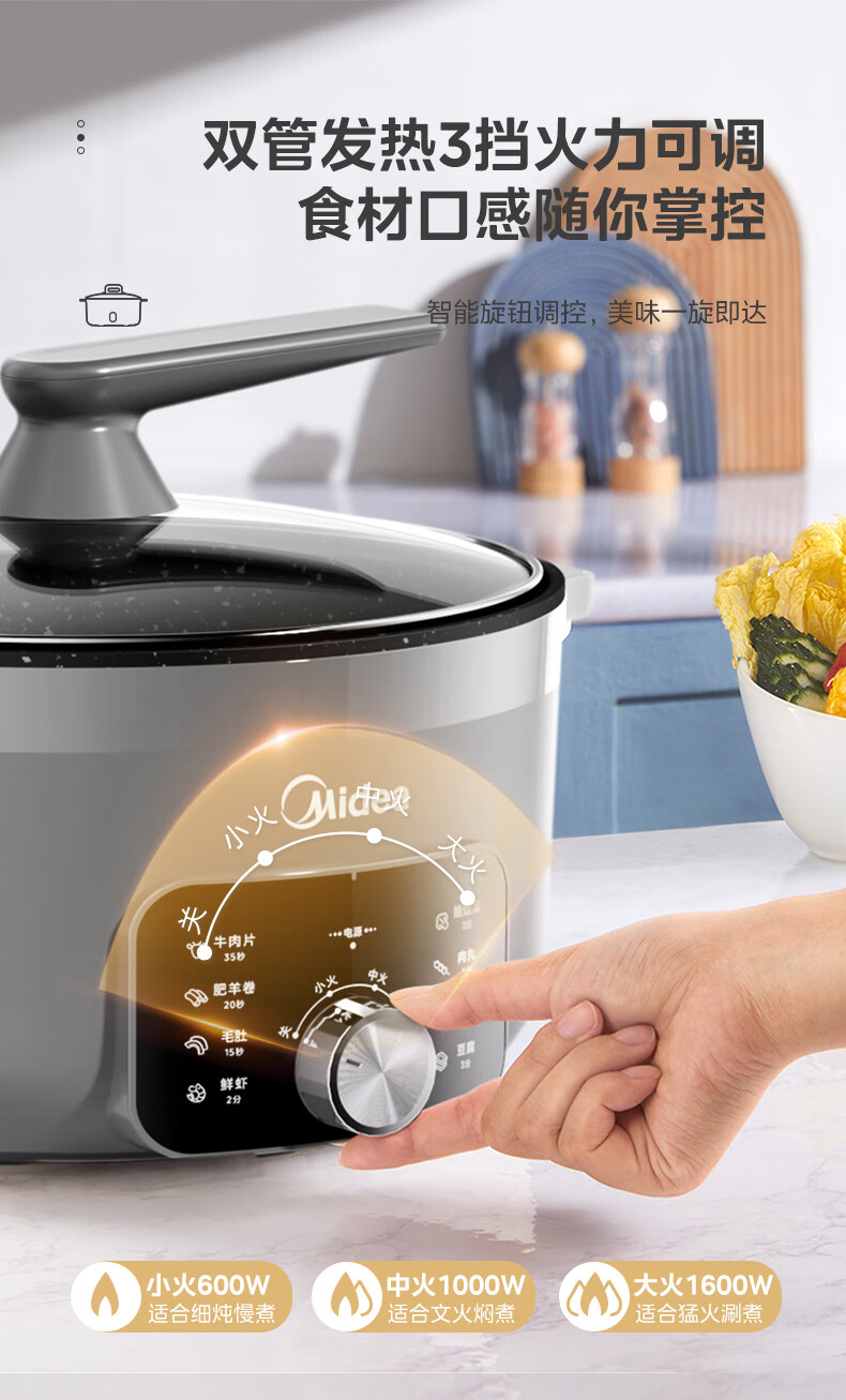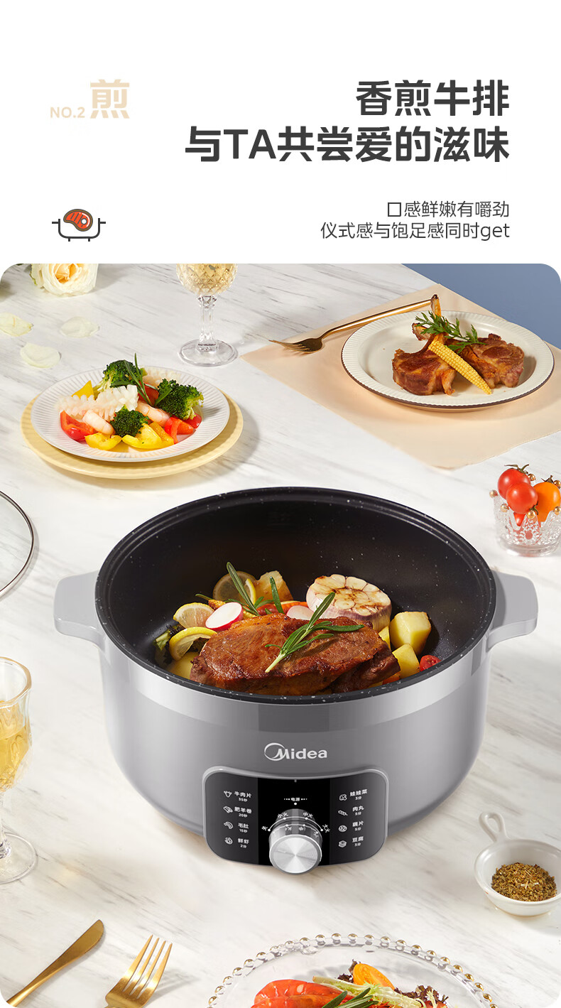 双水性不粘涂层,符合国家一级不粘标准;6L家庭享大容量,10cm加深锅;一米加长电源线,开吃不受“线”