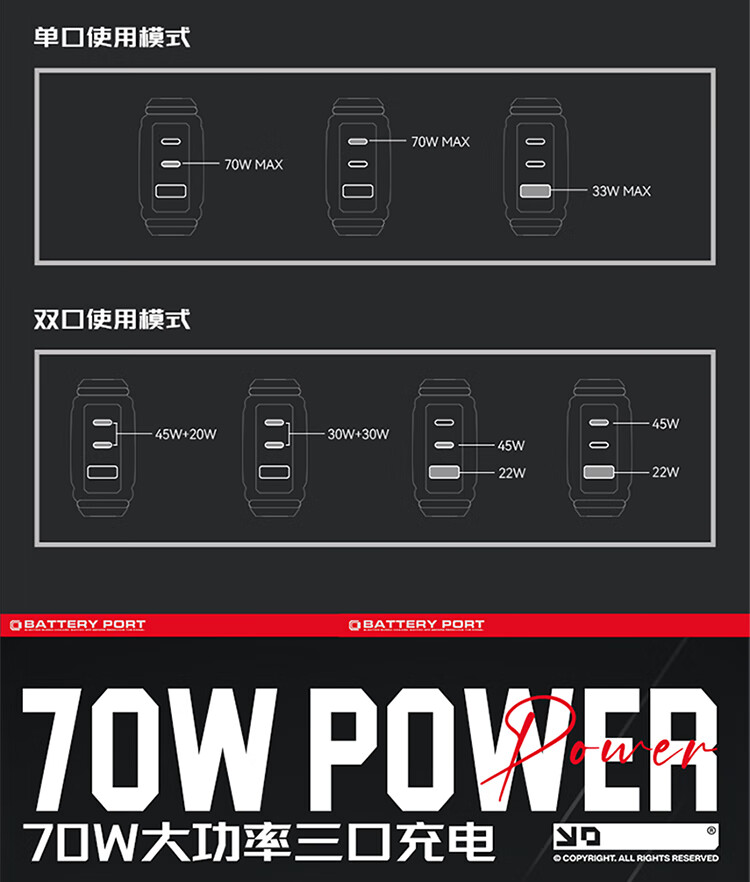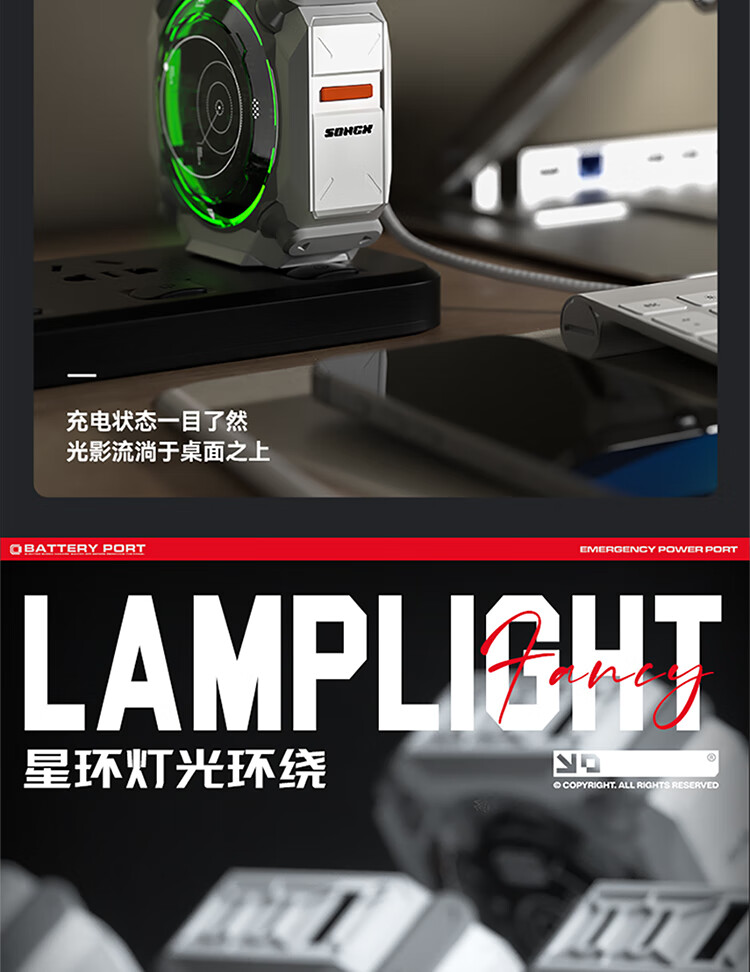70W大功率;三口智能分流技术;星环灯光环绕