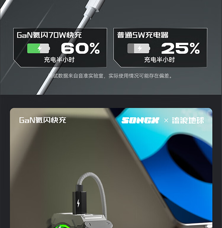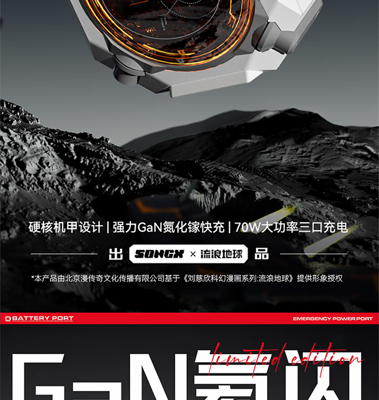 songx 联名流浪地球70W氮化镓充电器SONGX 70