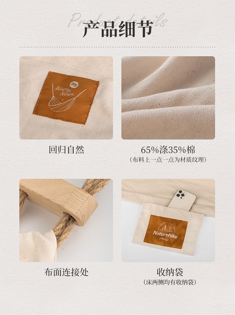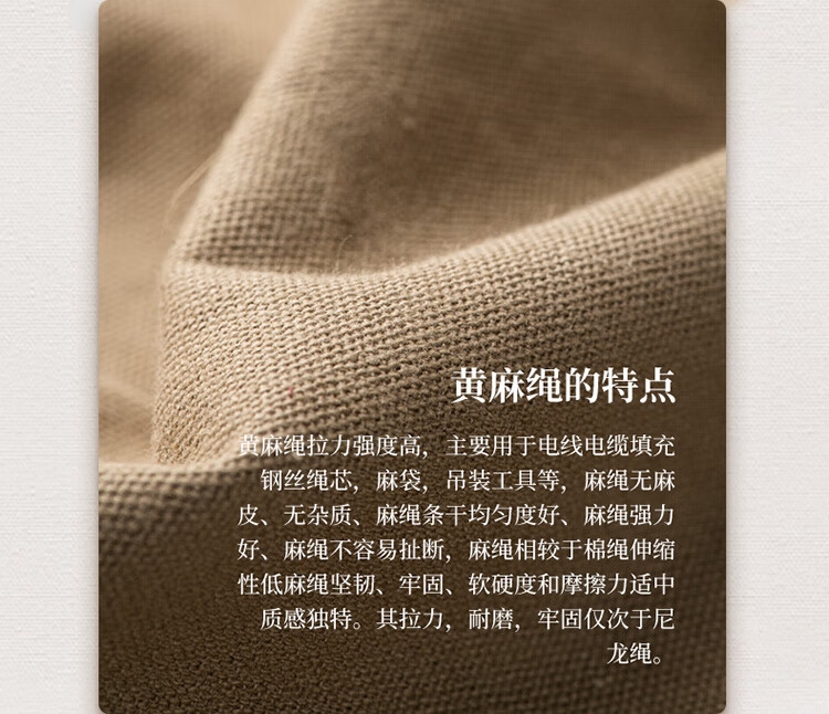 面料: 65%涤35%棉、白蜡木、黄麻绳、金属扣