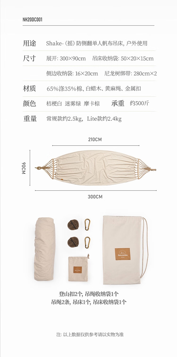 尺寸:展开: 300x90cm,吊床收纳袋: 50x20x15cm
