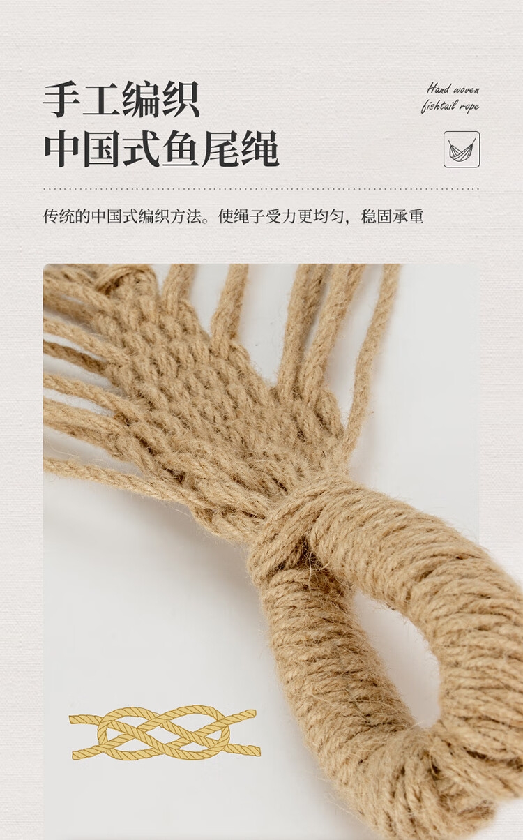 安心酣睡,稳妥防侧翻。;高强丝尼龙织绳,安全牢靠易调节。;手工编织,中国式鱼尾绳。