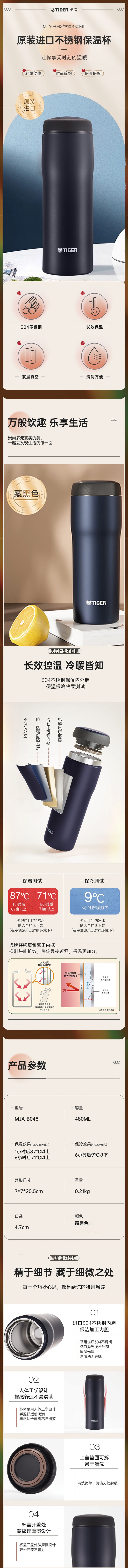 虎牌 不锈钢保温杯480mlMJA-B048