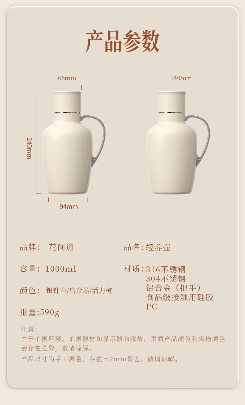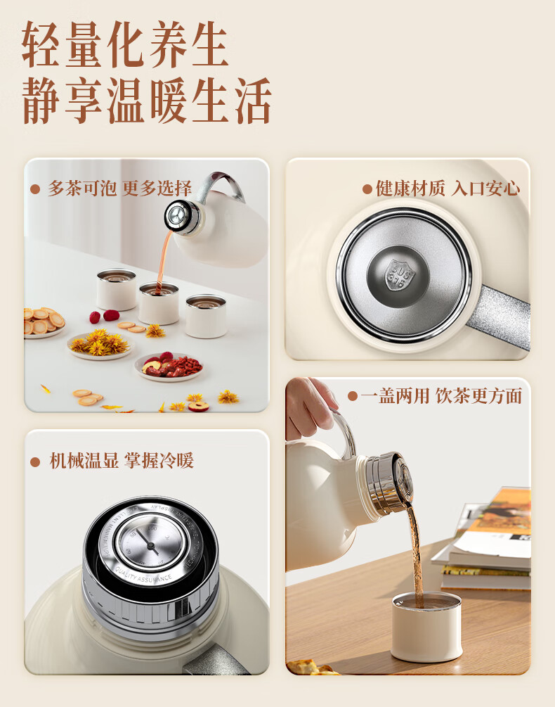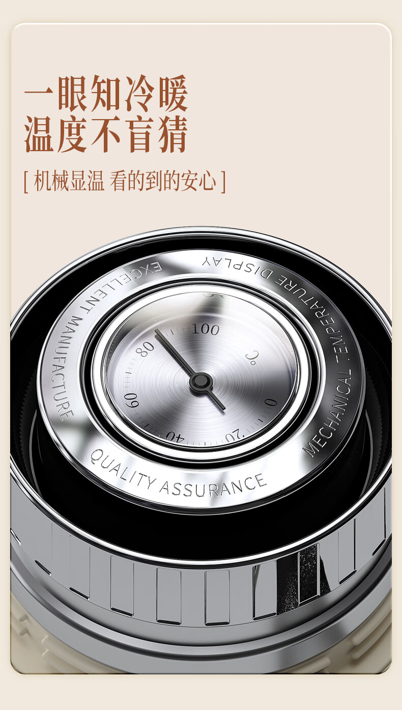 一盖双用;1000ML大容量;机械温显、316内胆
