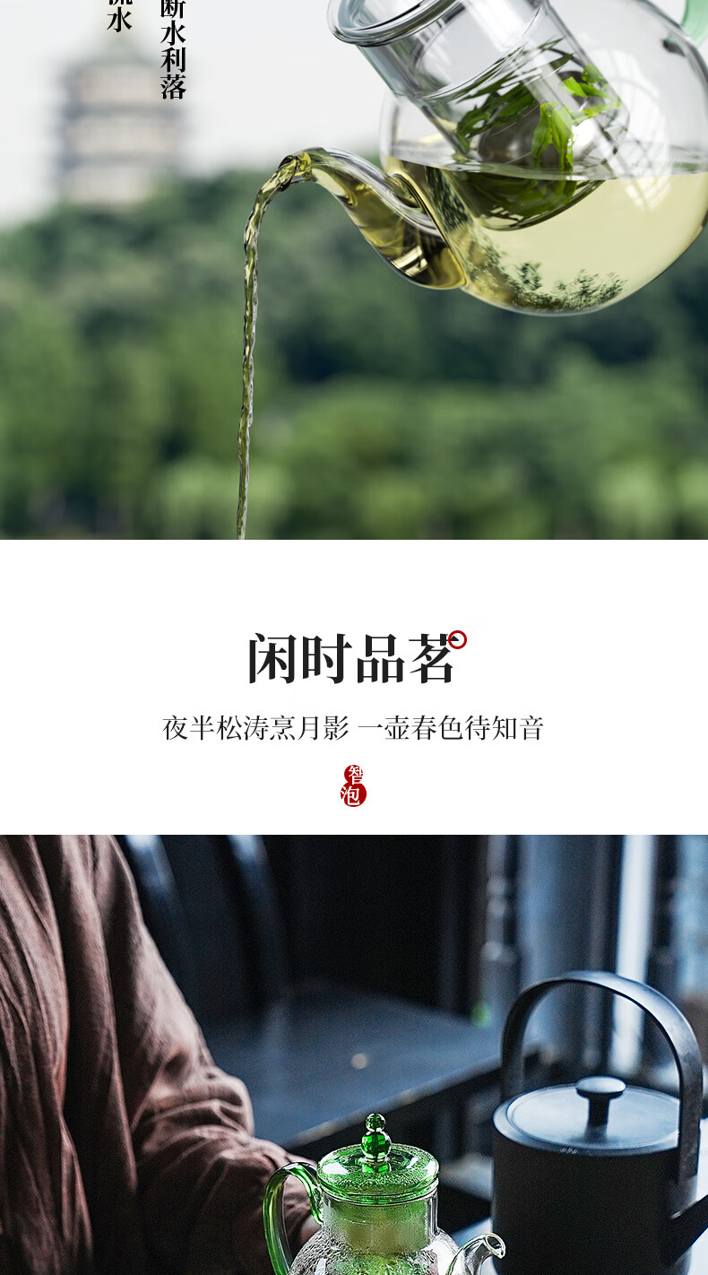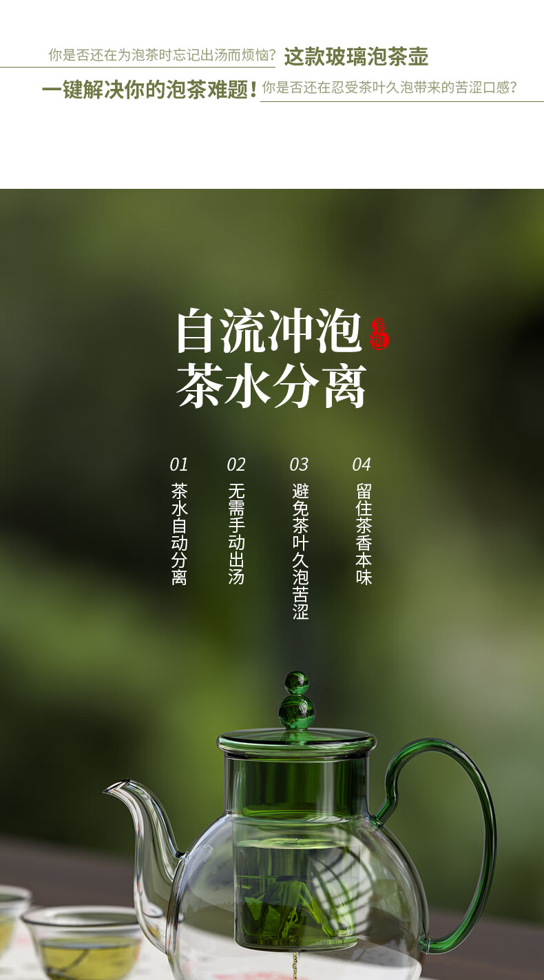 独特设计,茶水自动分离;高硼硅玻璃 不惧温差;通透洁净