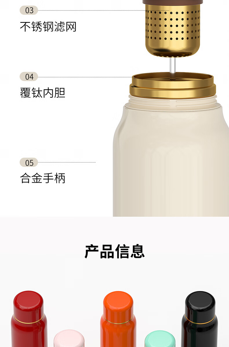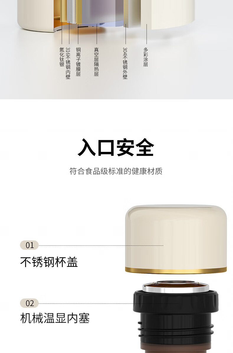 材质:机械温显,316无缝内胆+覆钛, 铝合金手柄