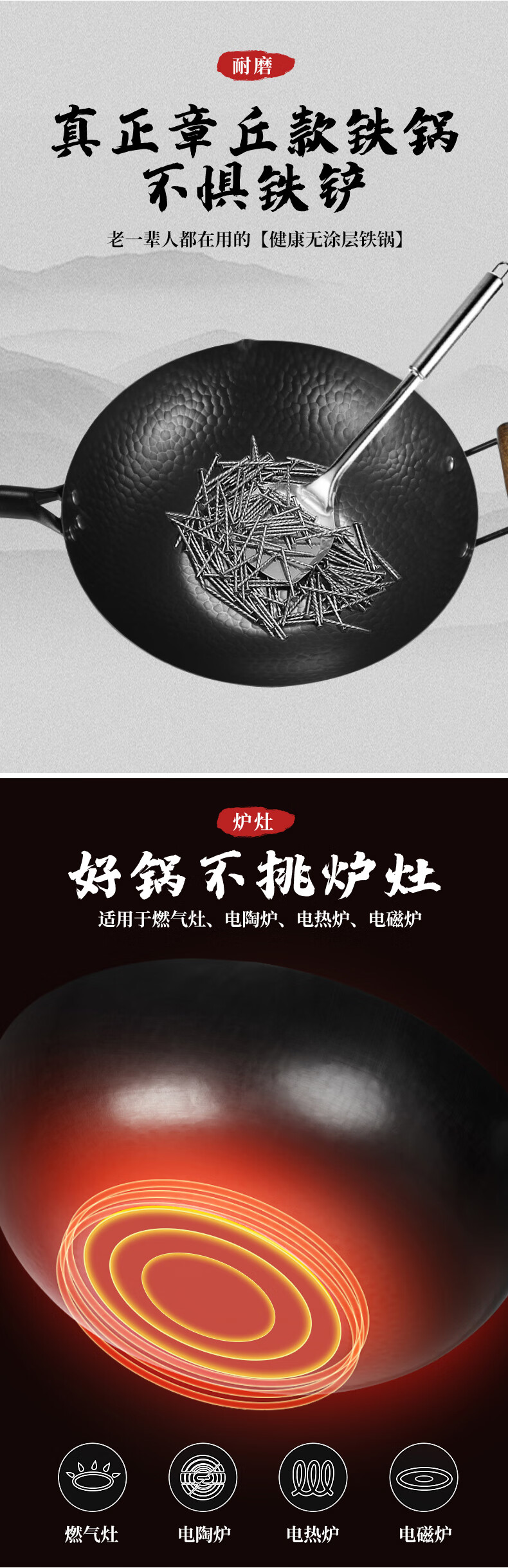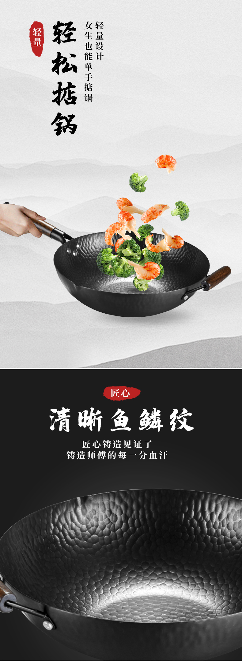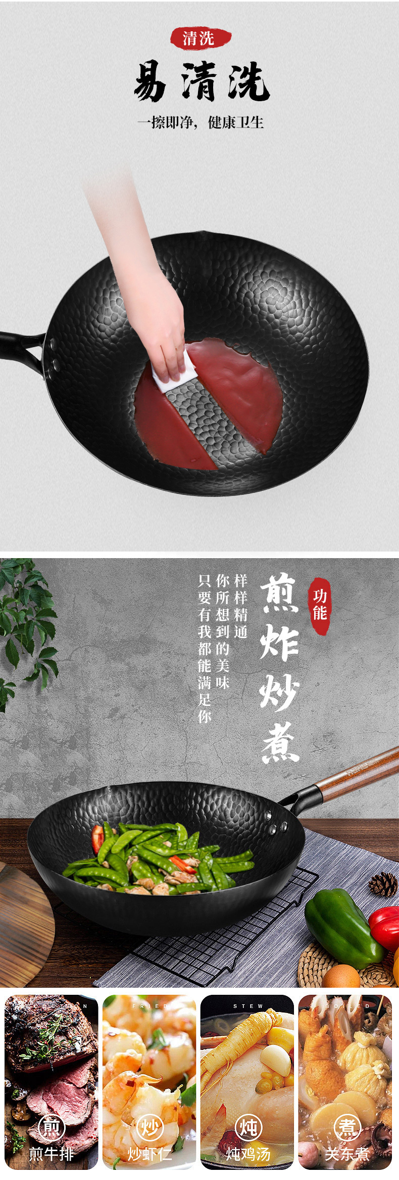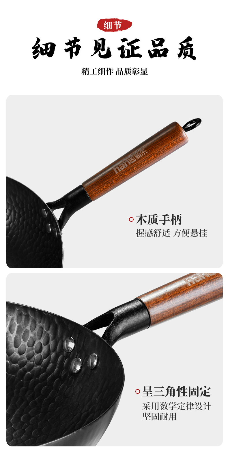 耐磨、不易粘锅;握感舒适方便悬挂;采用数学定律设计 坚固耐用
