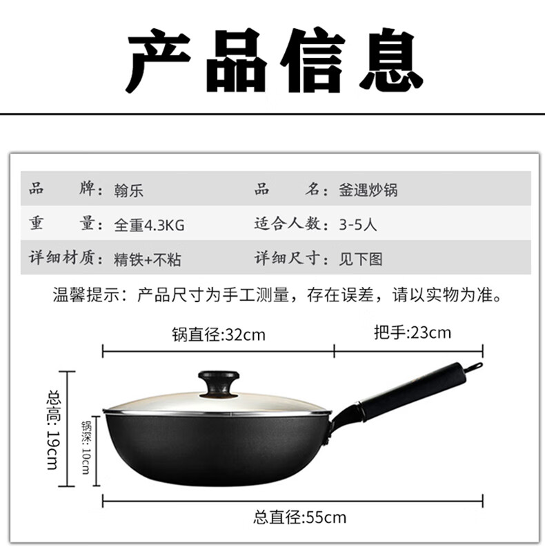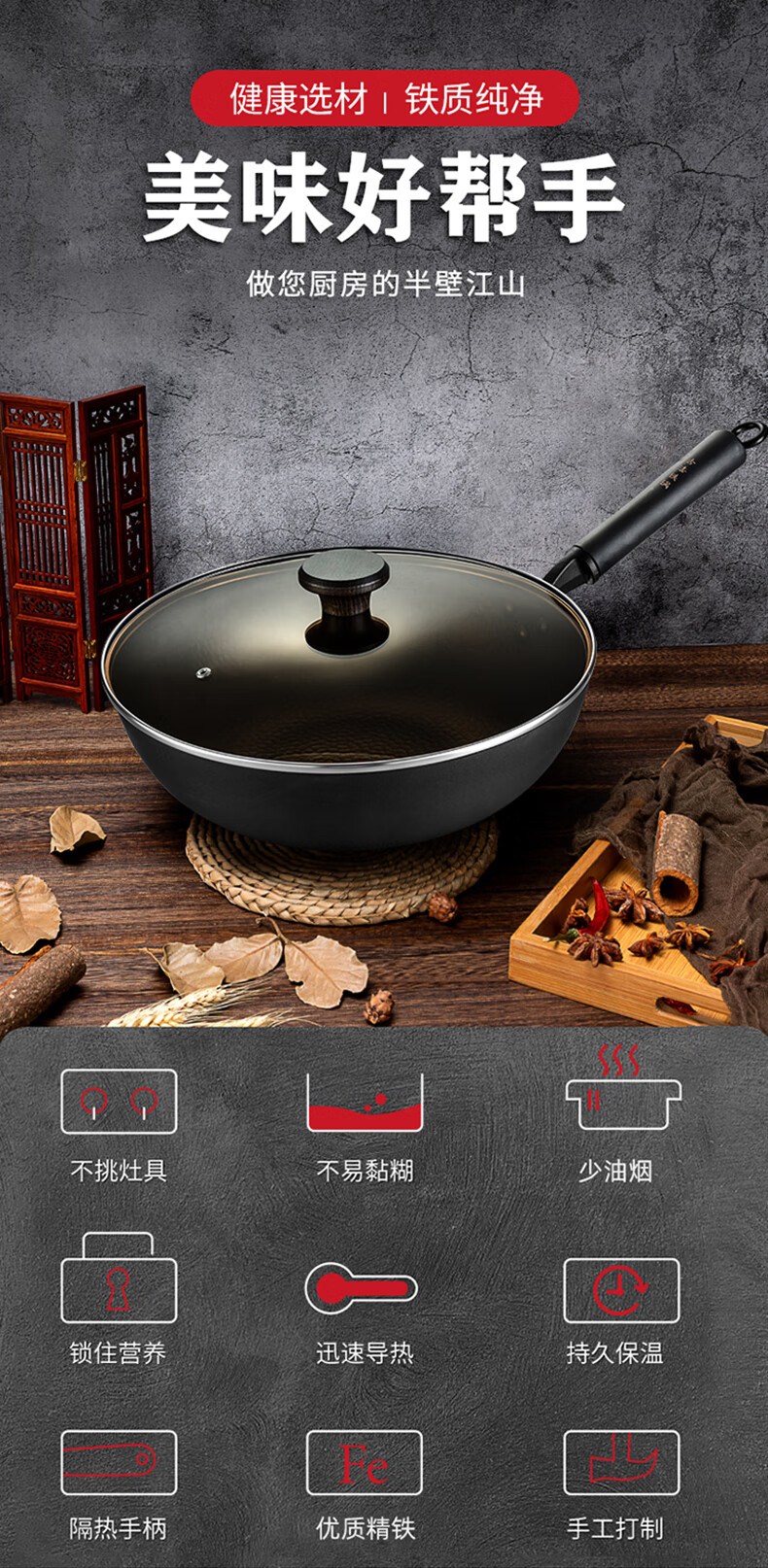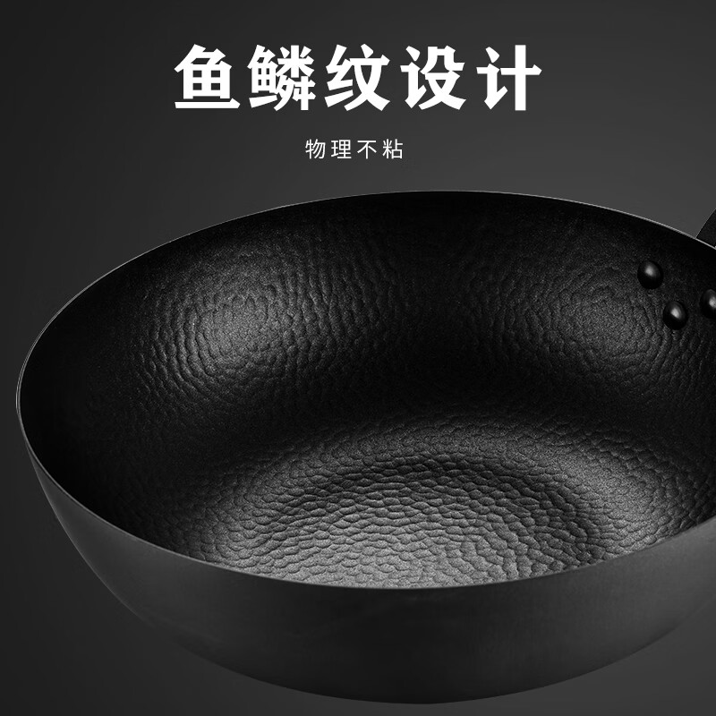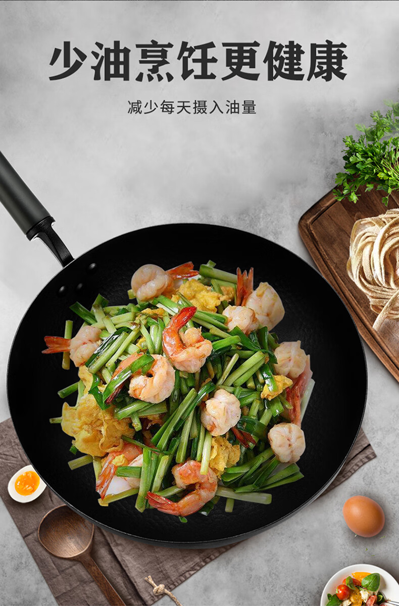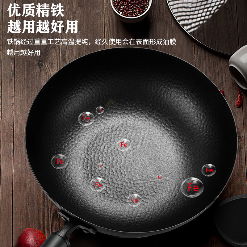厚釜精铁不粘炒锅;独创硬氧精铁不粘技术;老铁锅耐磨耐用加复可用电磁炉明火