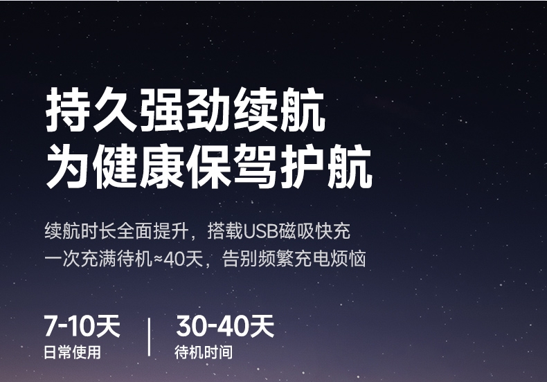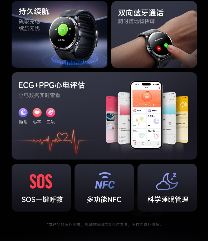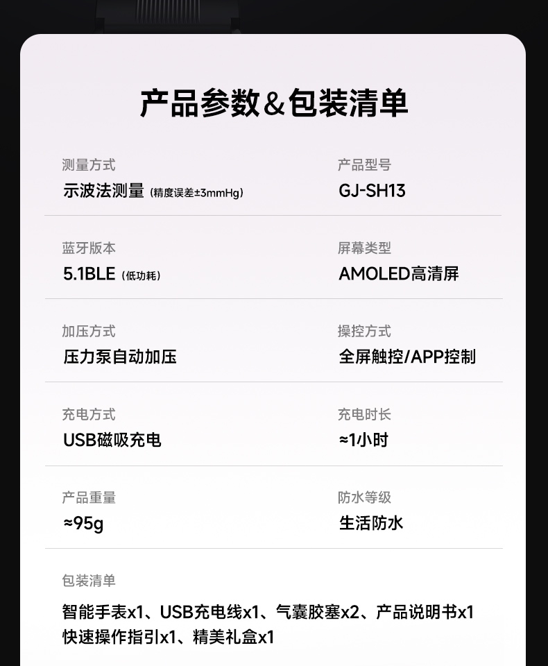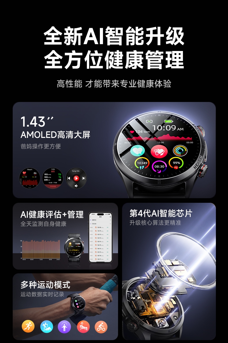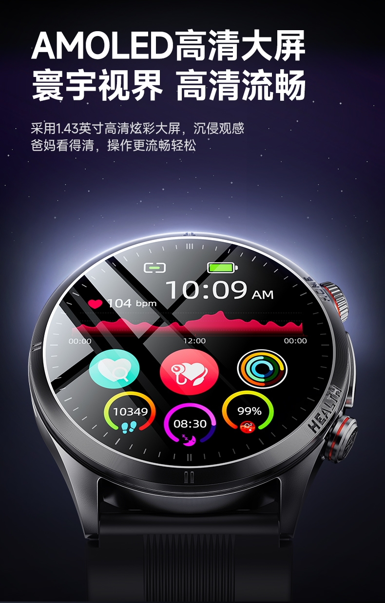 .43英寸AMOLED高清彩屏;第四代全新OSRAMSFH2703德国芯片;7天超长续航,守护健康不断电