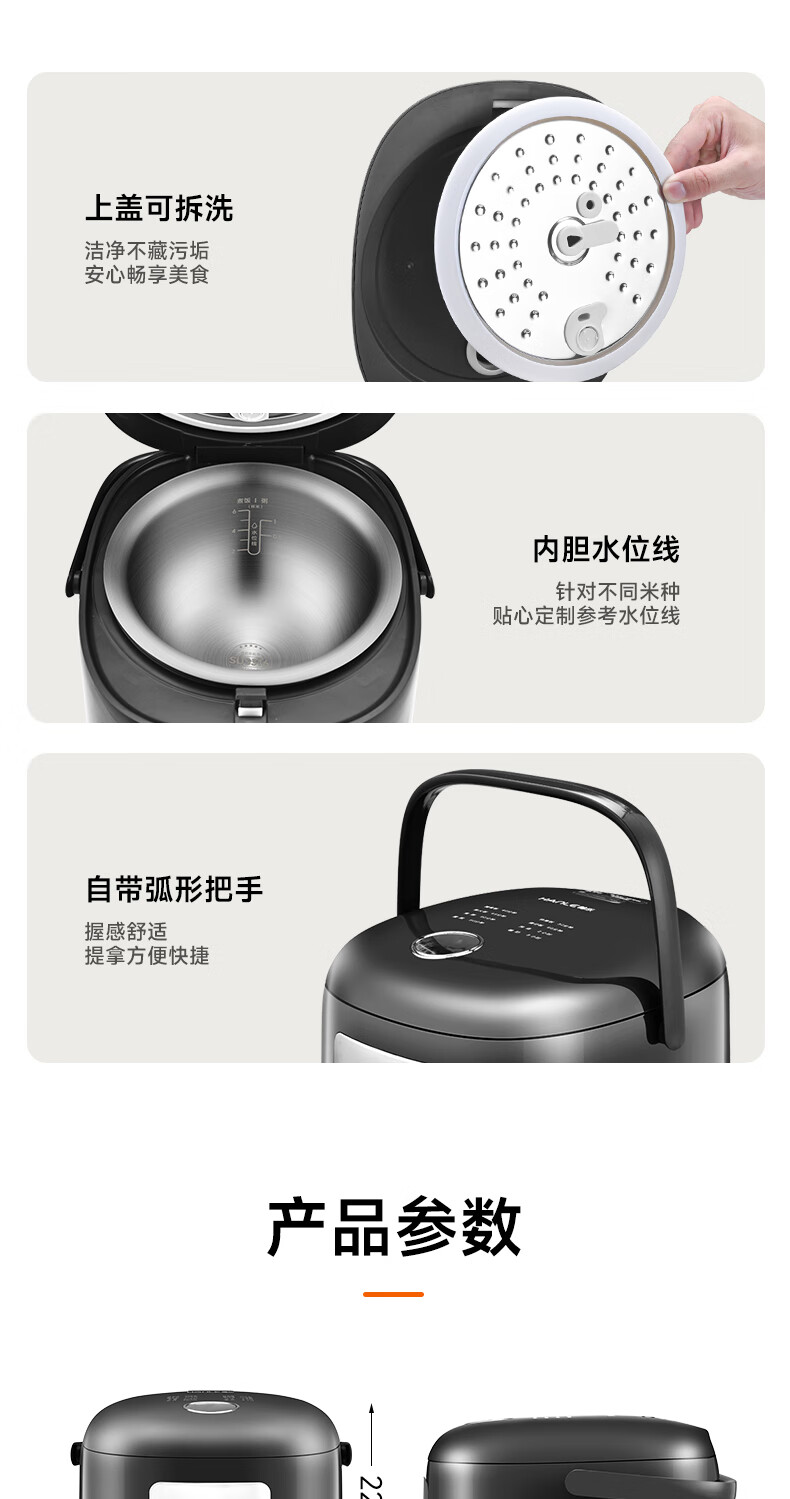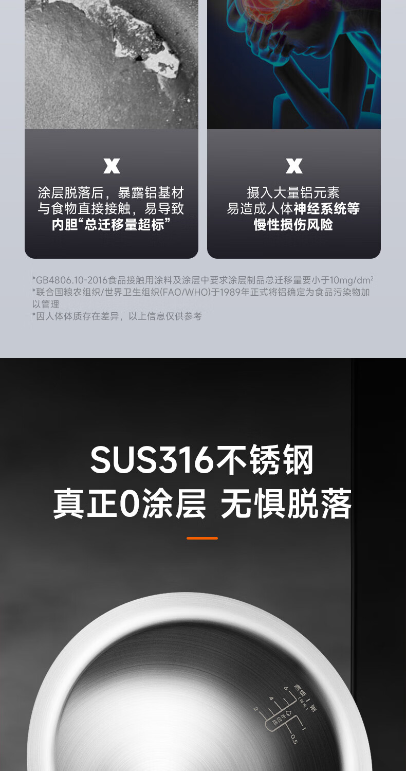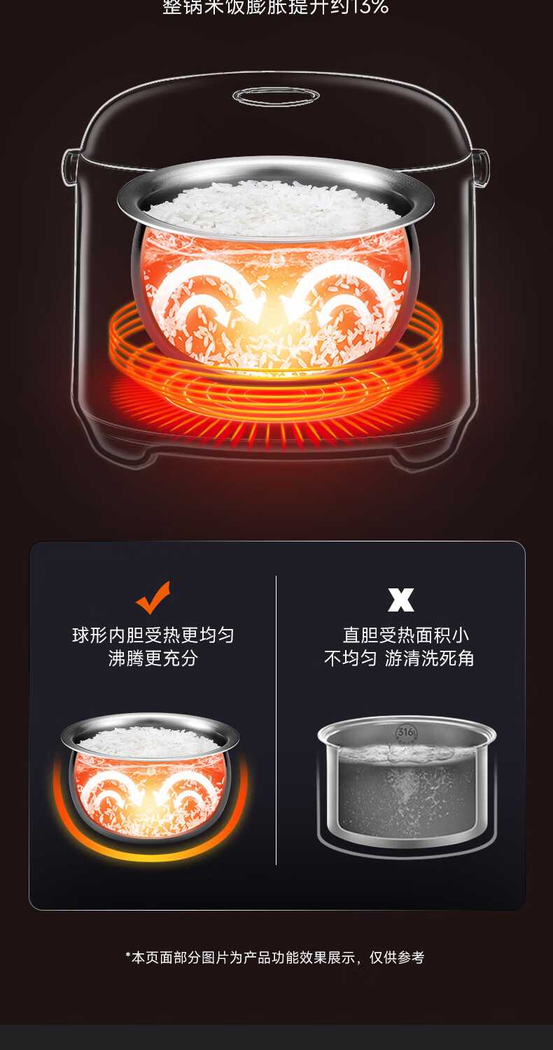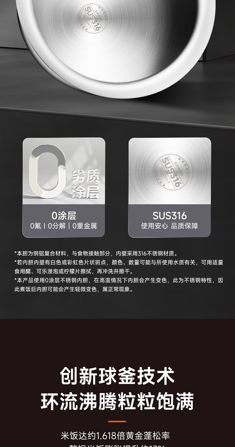 智能精控火候;LED屏触控;SUS316球形厚釜内胆