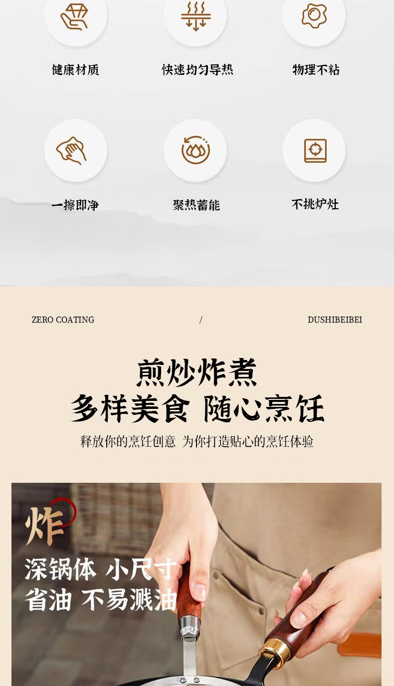 8.5CM加深锅体;加厚锅身耐刮耐磨;厚实有质感,全炉灶通用