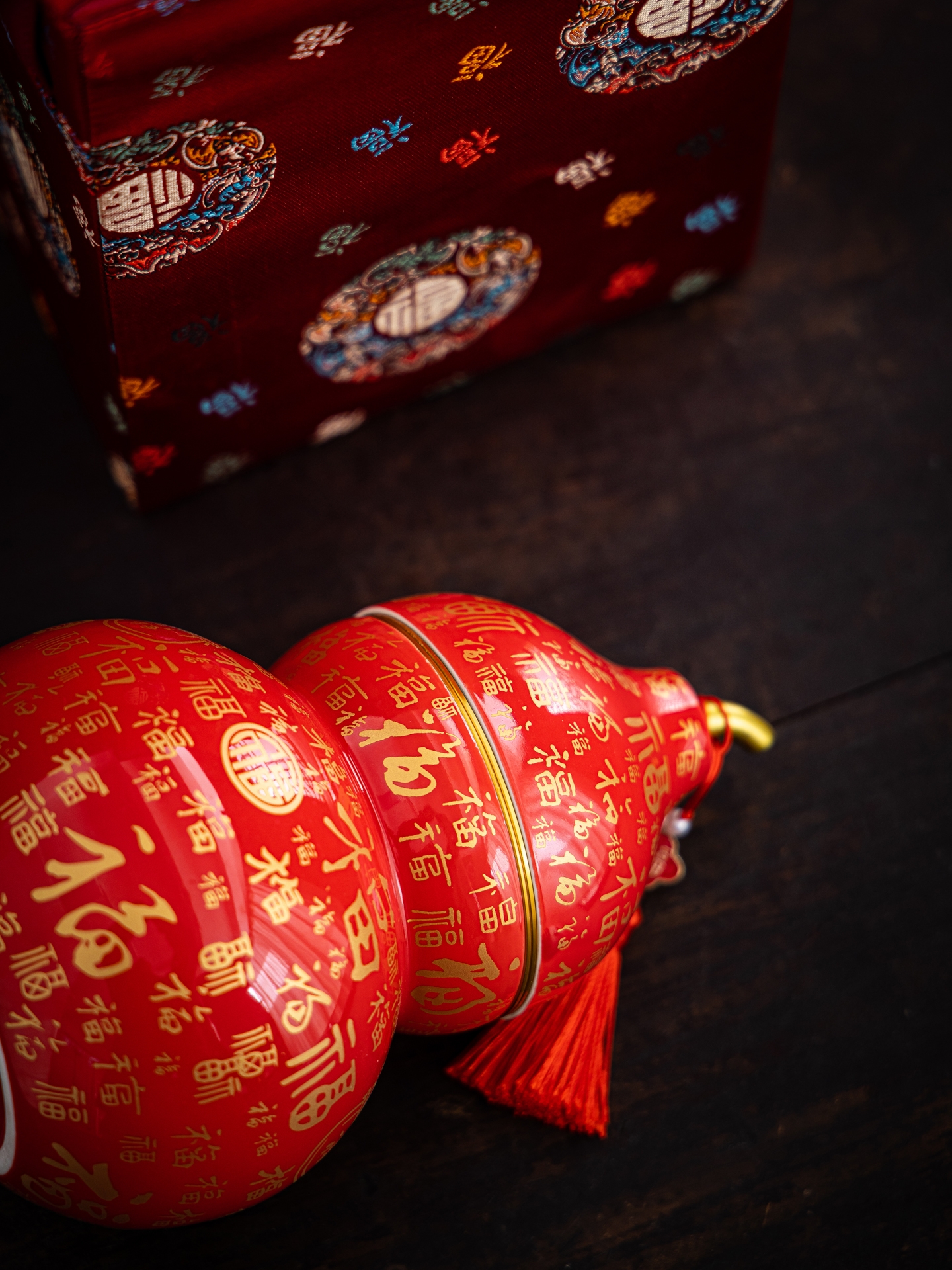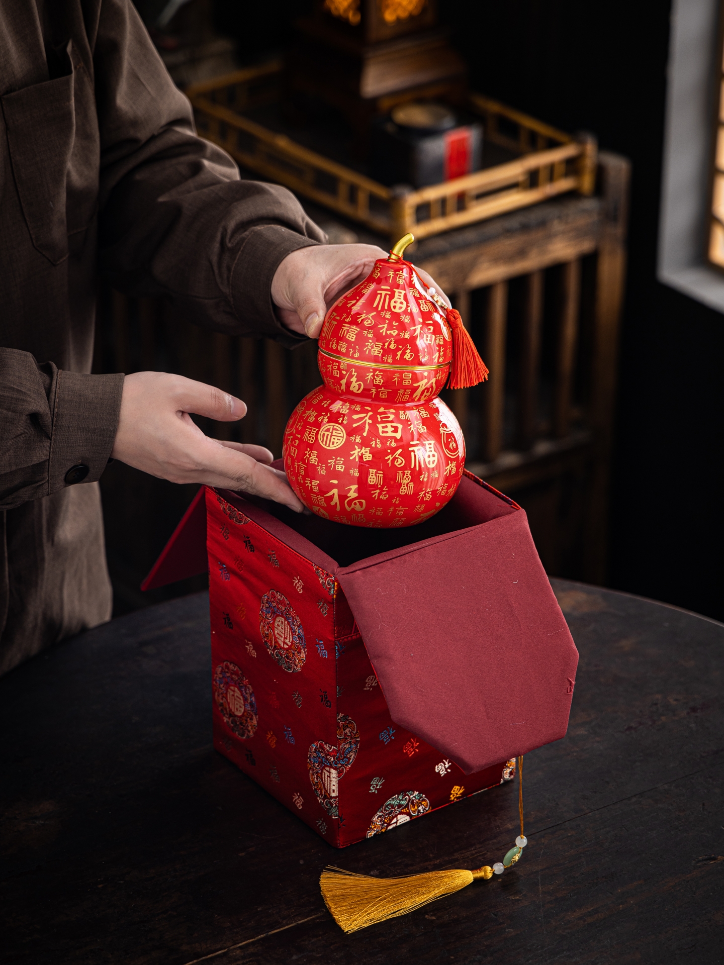 葫芦造型,福禄双全。;百福图案,福气满满。;喜庆包装,好运连连。