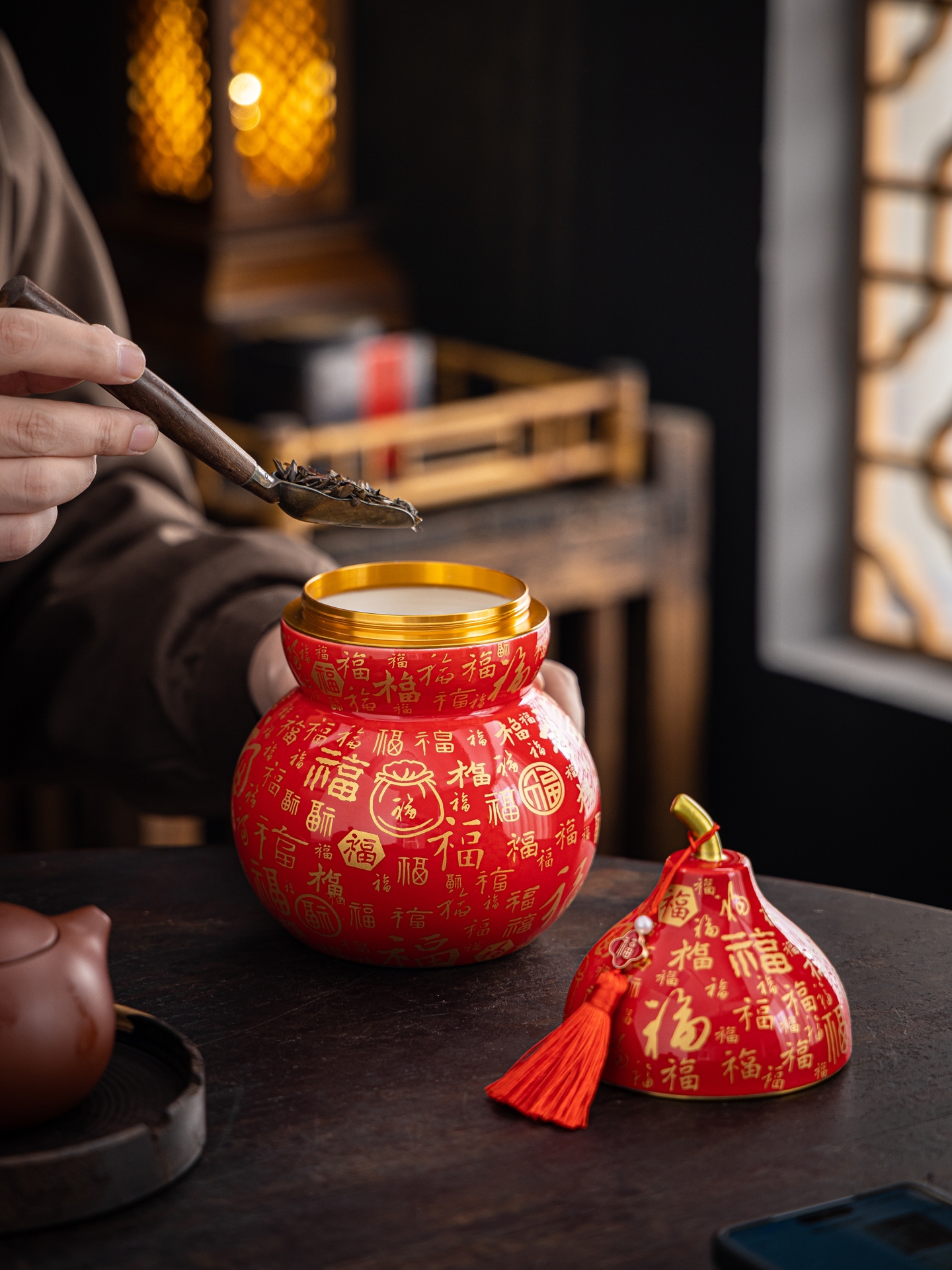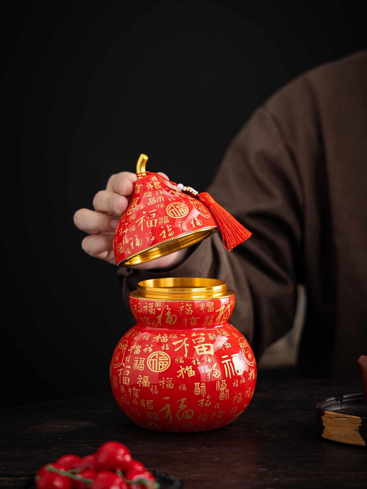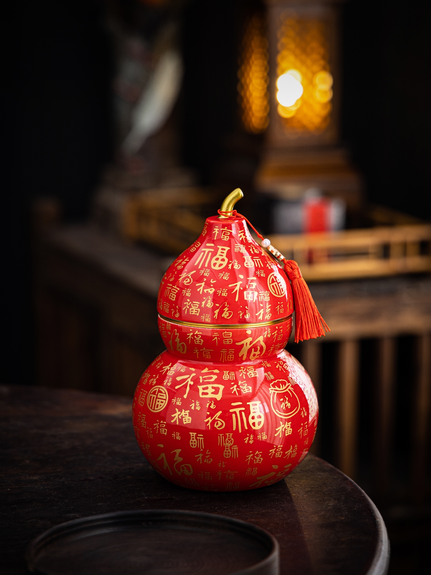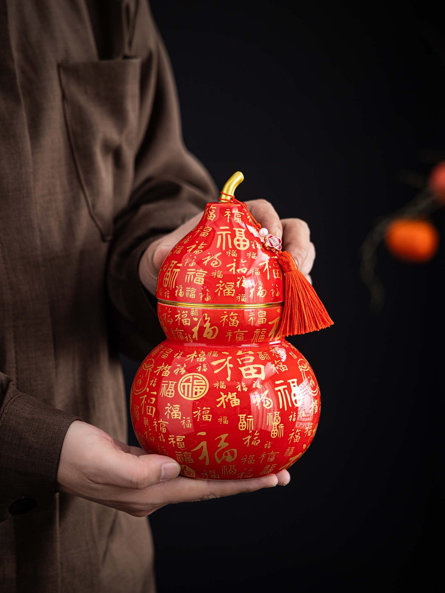 拂器 新年喜庆婚庆葫芦陶瓷茶叶收纳罐CYG001