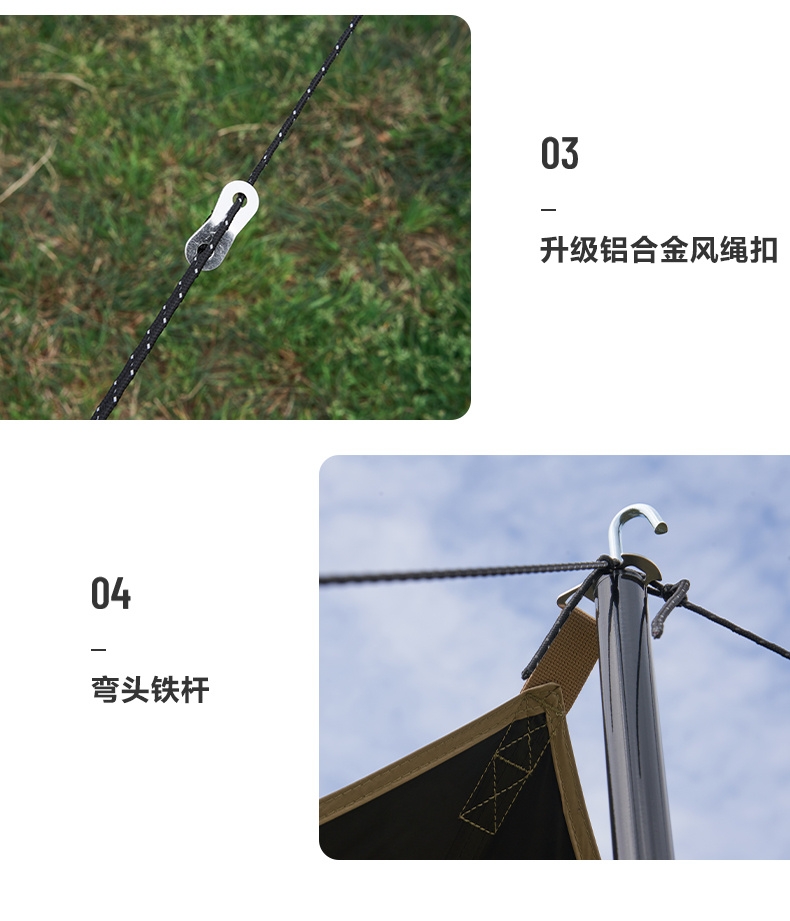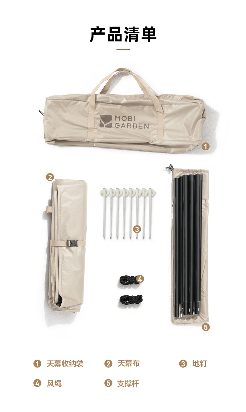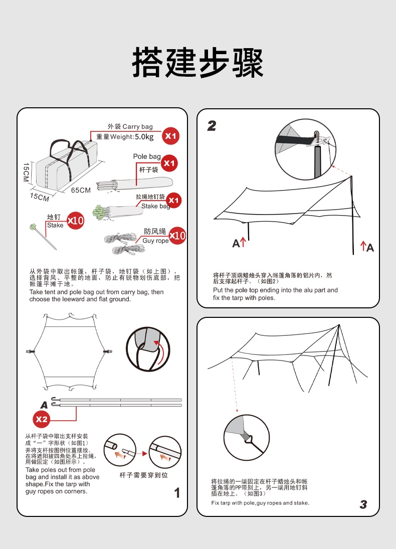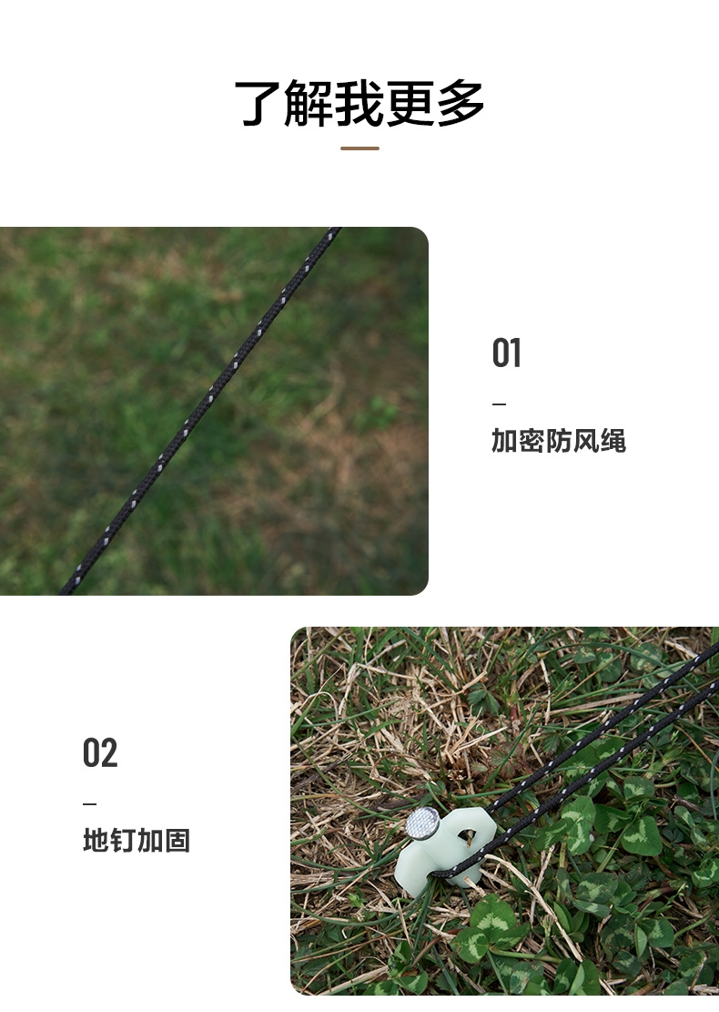 配置清单:支撑杆*2 风绳*8 地钉*8