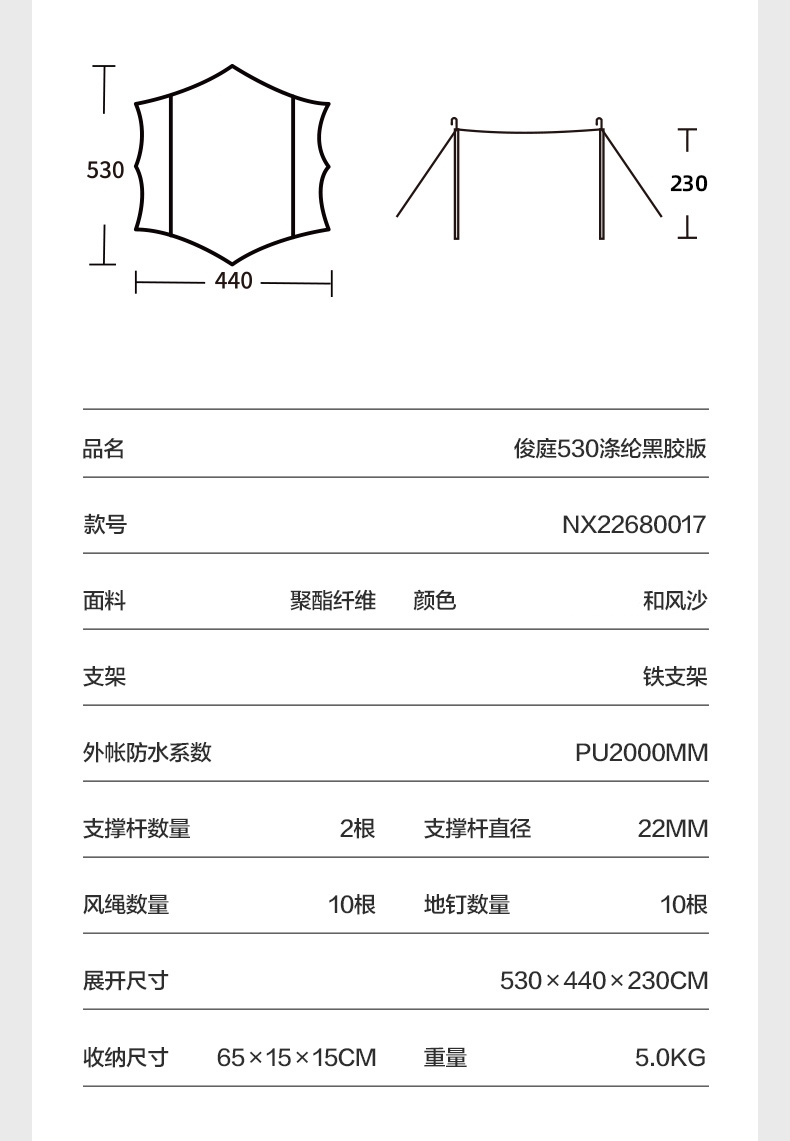 牧高笛 俊庭530涤纶黑胶版和风沙NX22680017