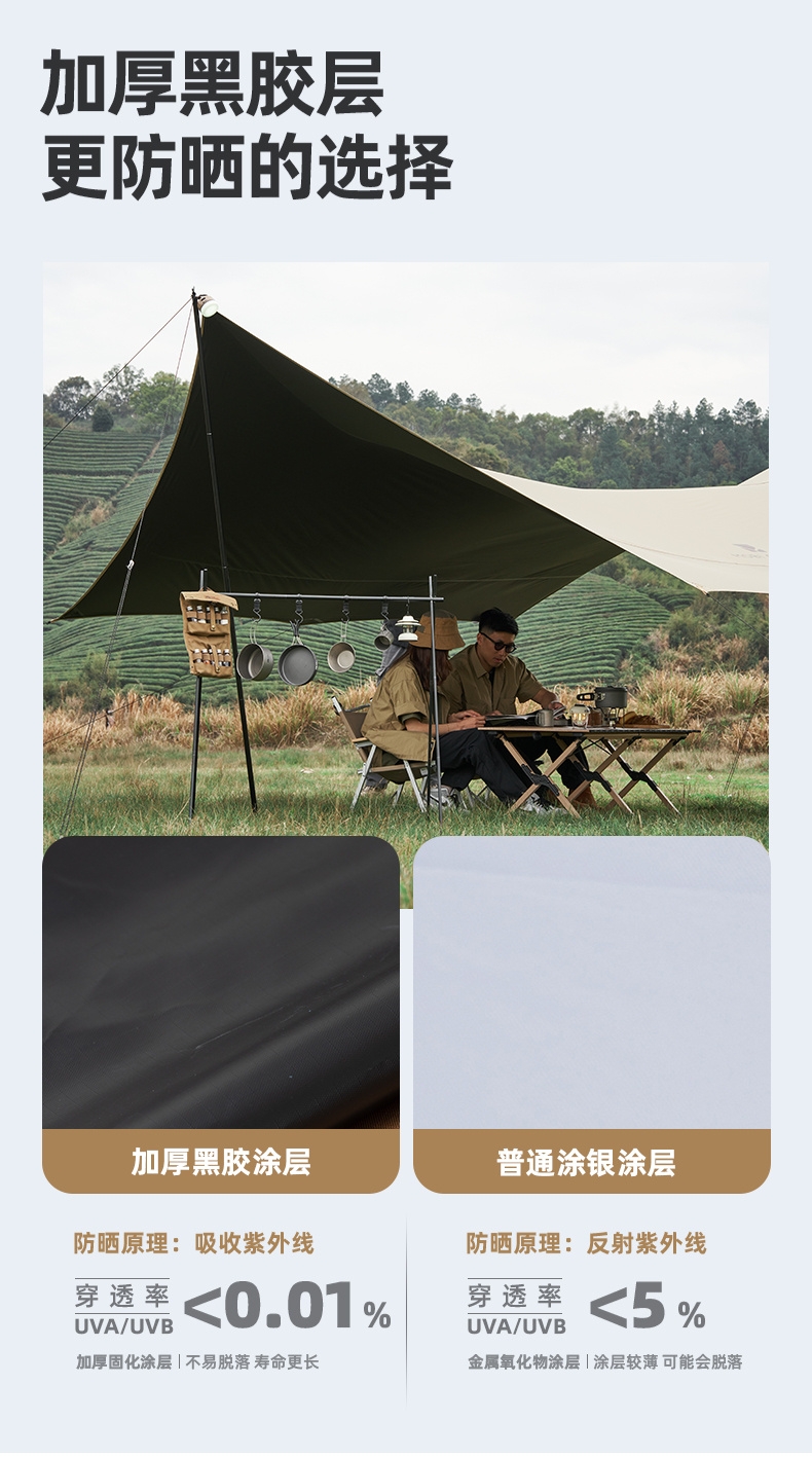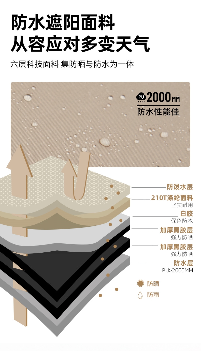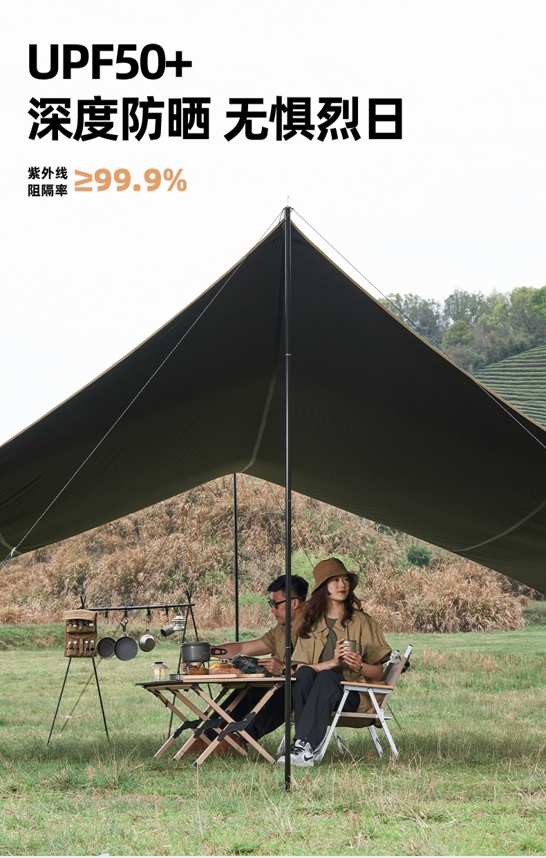五层科技面料深度防护 无惧烈日;UPF50+深度防晒 隔热降温畅享户外阴凉;加宽侧翼颜值与实用并存
