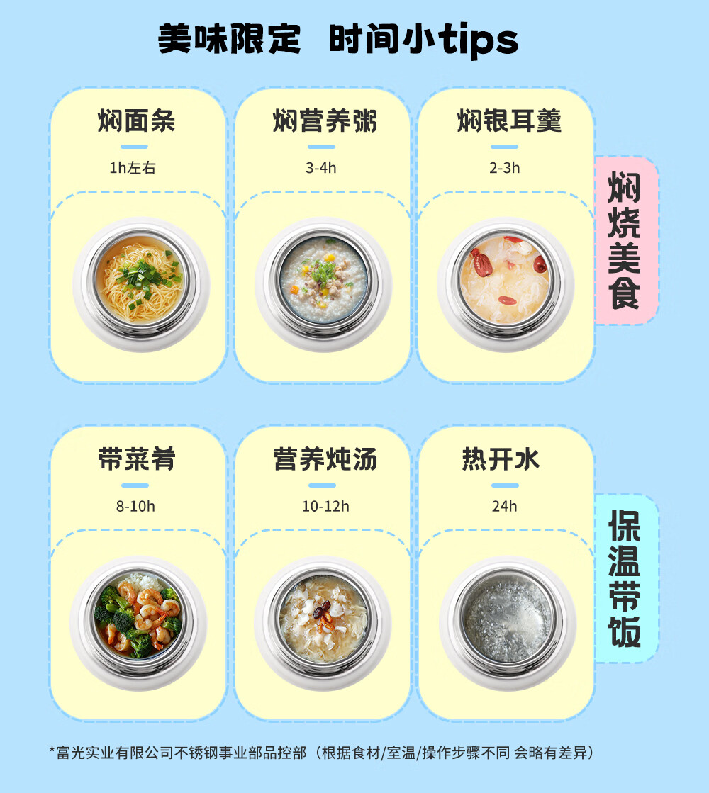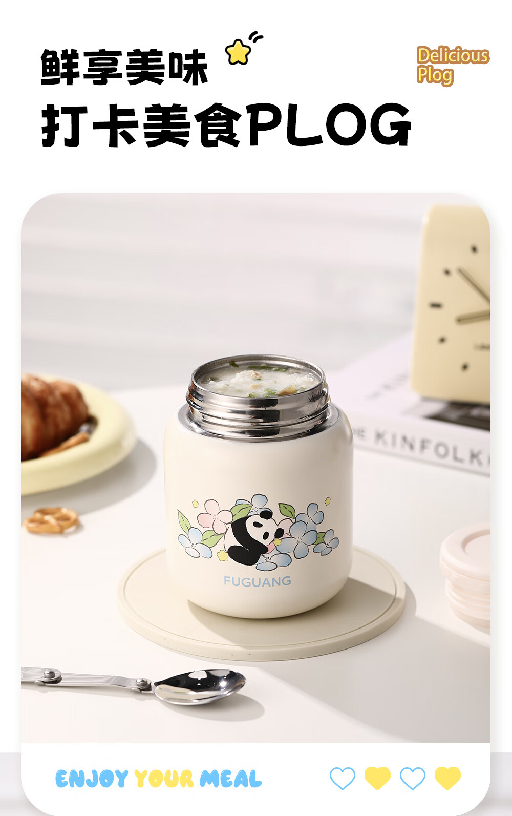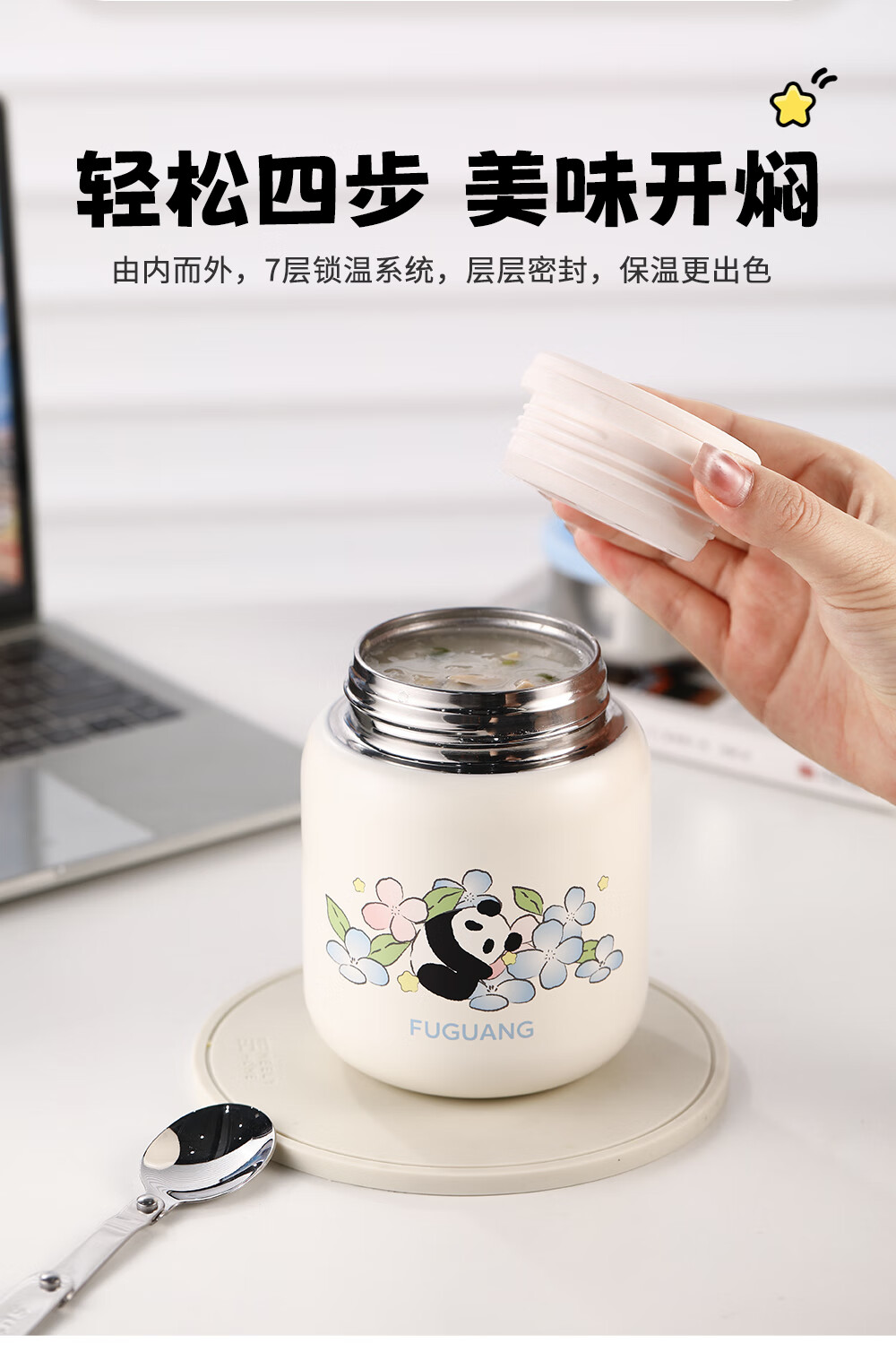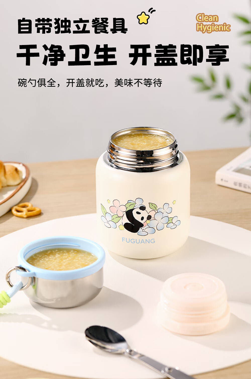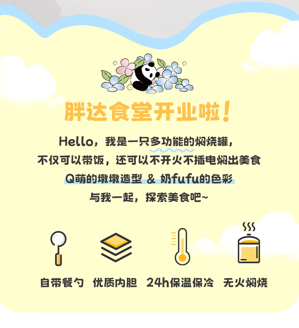 · 不锈钢小碗盖自带不锈钢折叠勺;· 便携提绳 随拎随走;· 316L材质,保温保冷,材质更安全