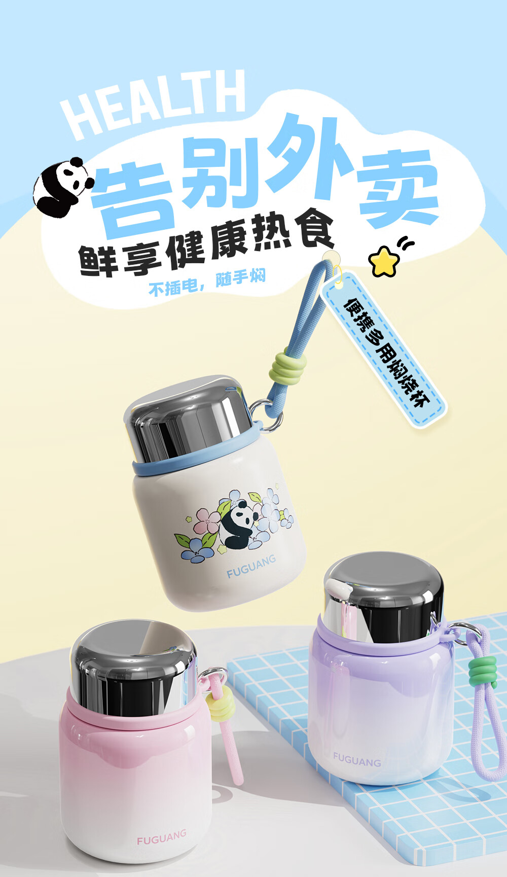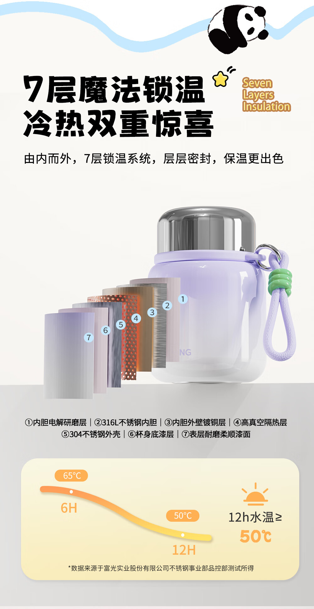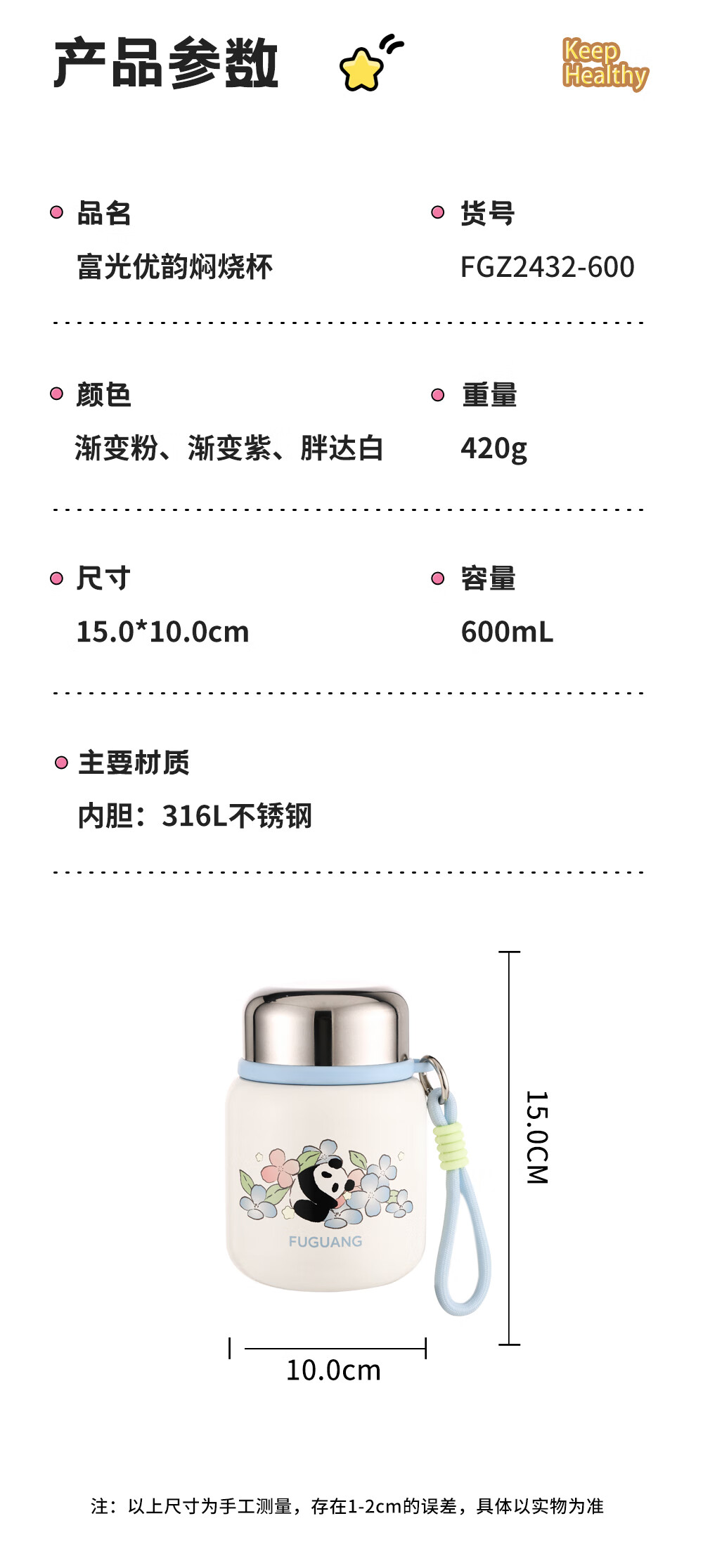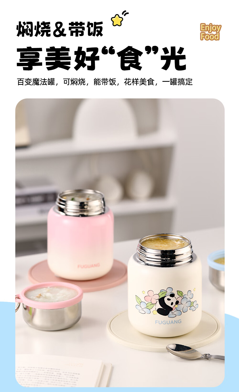 · 不锈钢小碗盖自带不锈钢折叠勺;· 便携提绳 随拎随走;· 316L材质,保温保冷,材质更安全