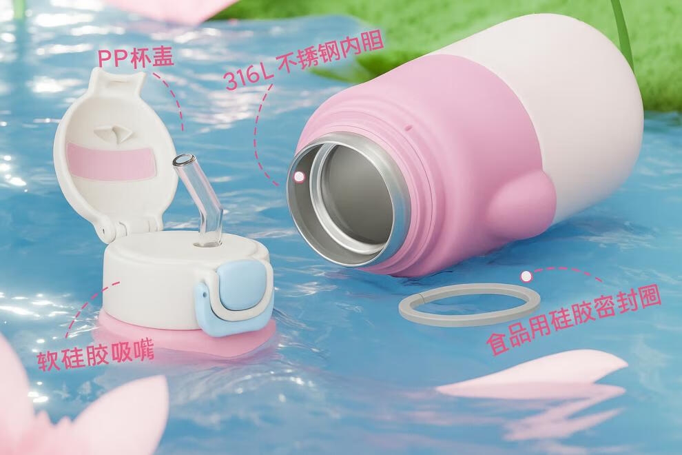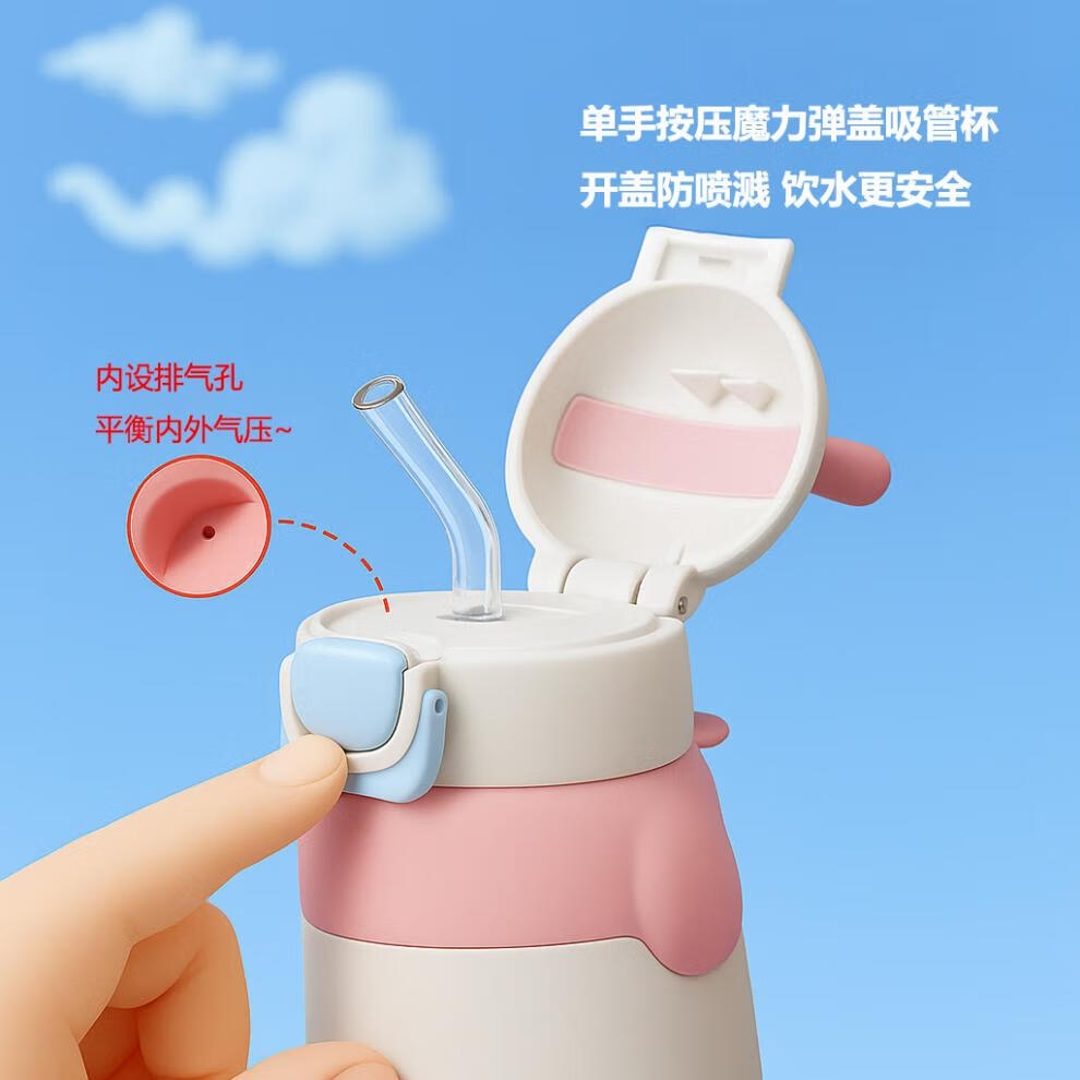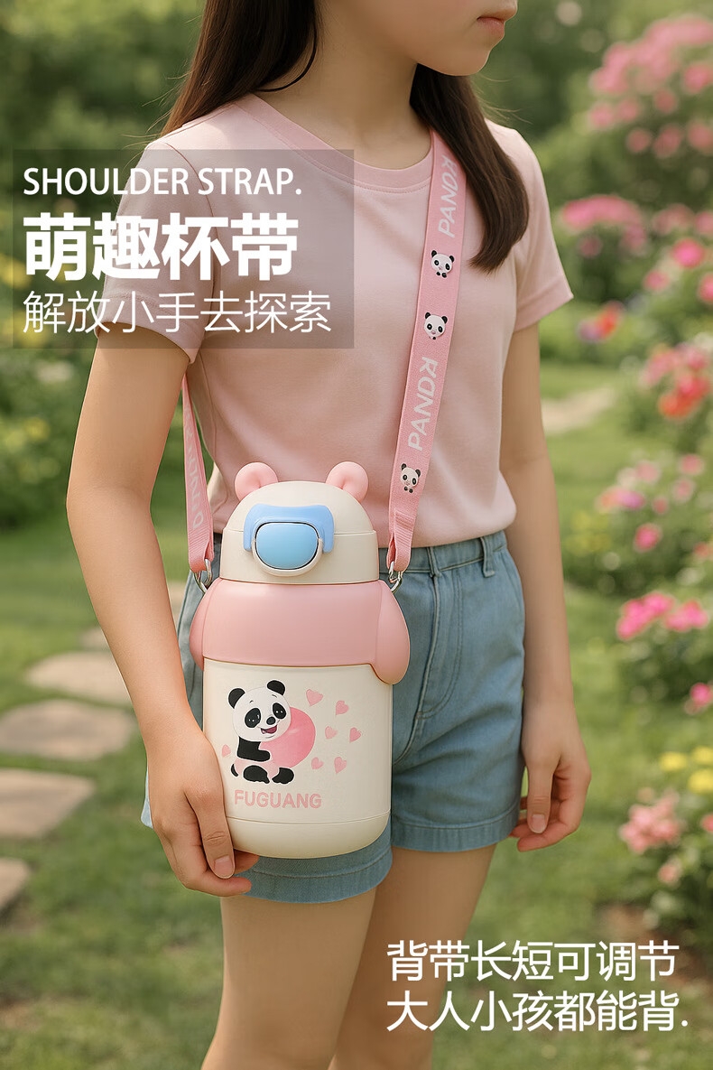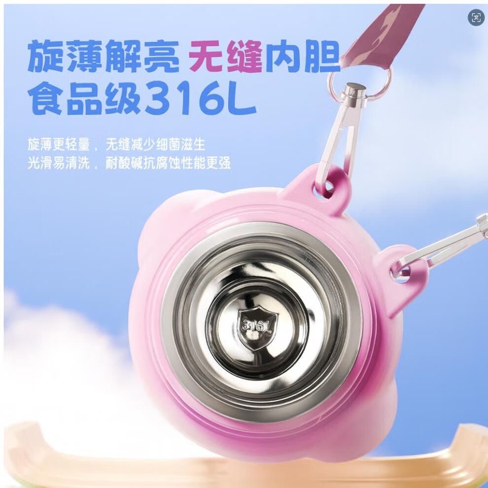 · 卡通造型,萌趣可爱;· 斜挎背带,便携出行;· 316L内胆 保温更健康