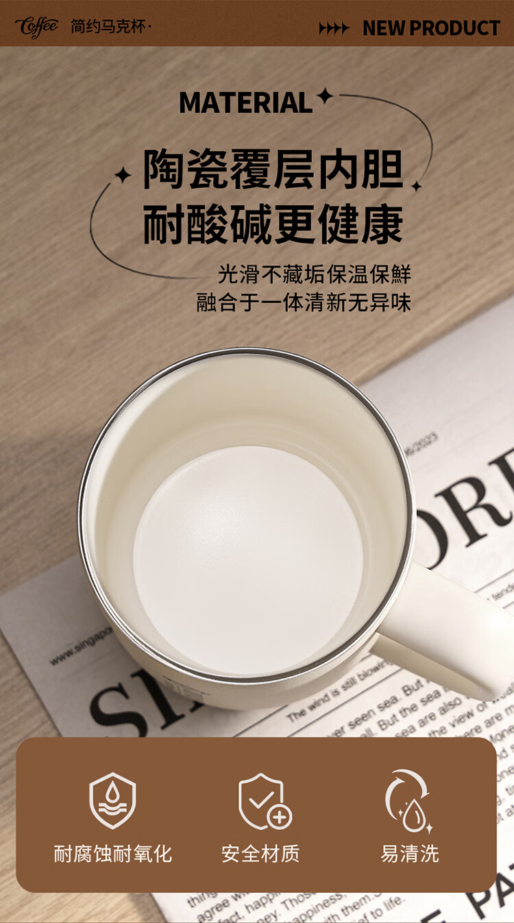 · 陶瓷覆层内胆;· 广口设计,清洗方便。;· 橡胶防滑杯底,更安全。