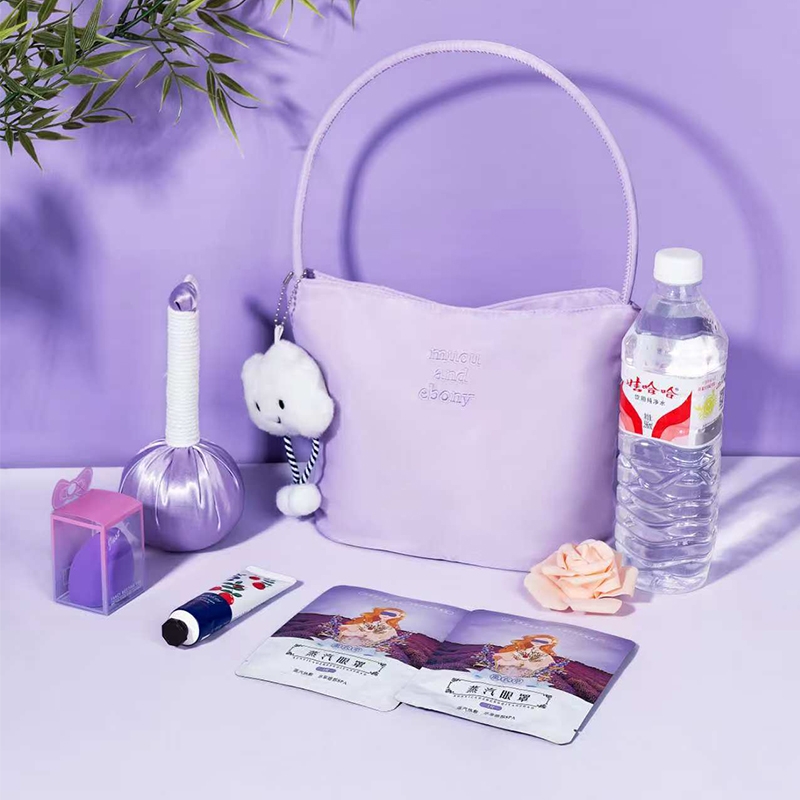 绝绝紫托特包,高弹防水尼龙面料,精美刺绣;丝质养生锤,肩颈救星;薰衣草蒸汽眼罩,遮光舒缓助眠;绝绝紫同色系搭配套装,更懂女生更懂爱