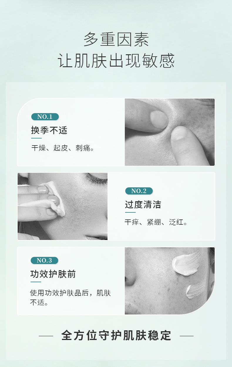 舒缓干敏红、稳定肤况;晒后/旅行/出差急救;补水、深润修护,告别反复敏感
