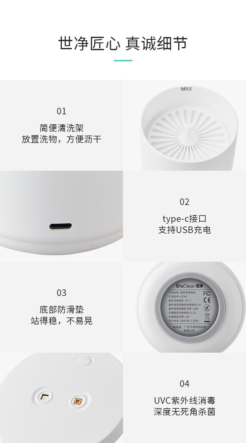 高频清洗,洁净彻底;食品级材质,安全放心;内置清洗架,方便贴心