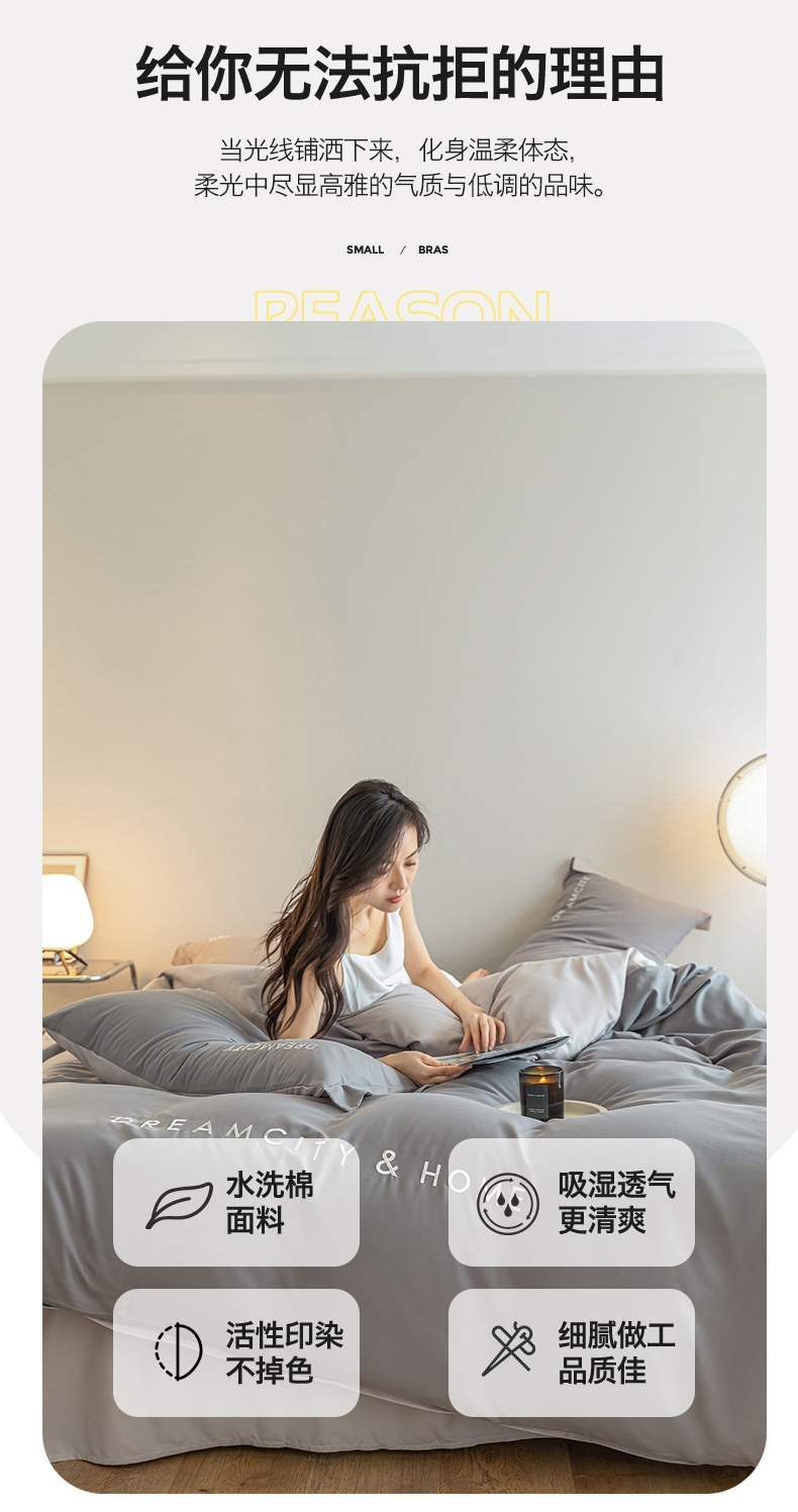 罗曼罗兰 水洗磨毛套件奥利中灰751926