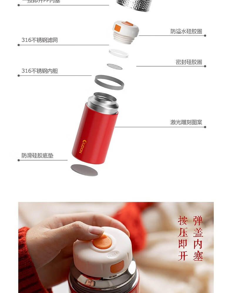 真空保温杯/壶;带隔断滤网适合焖茶;杯盖即是主人杯