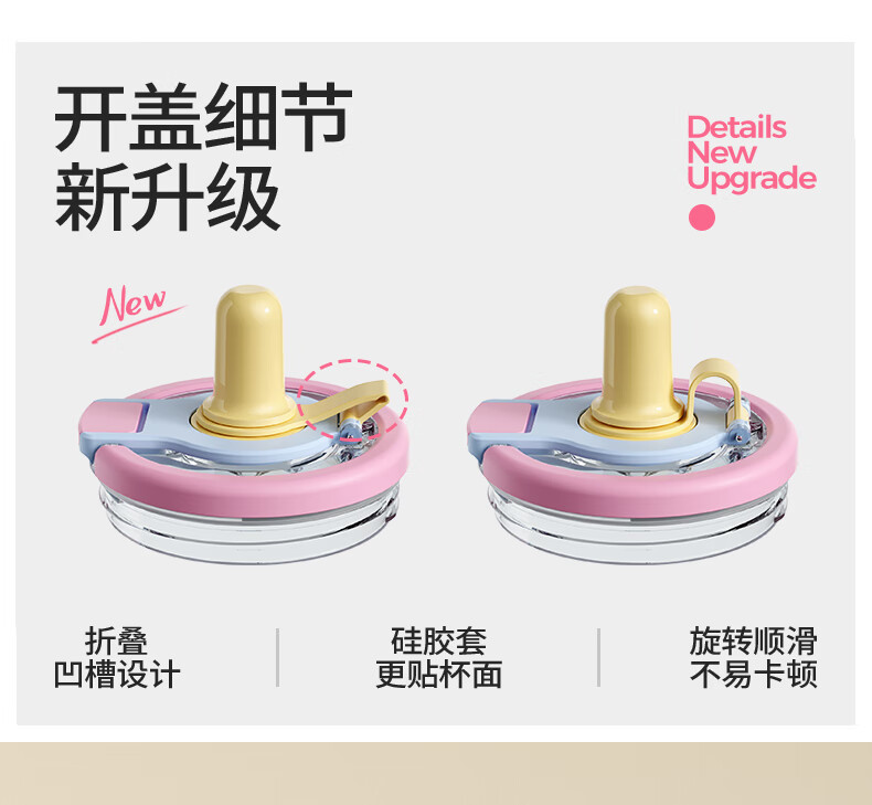 折叠凹槽设计;硅胶套更贴杯面;旋转顺滑不易卡顿