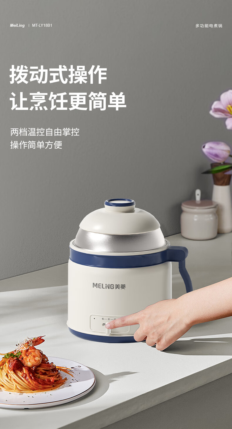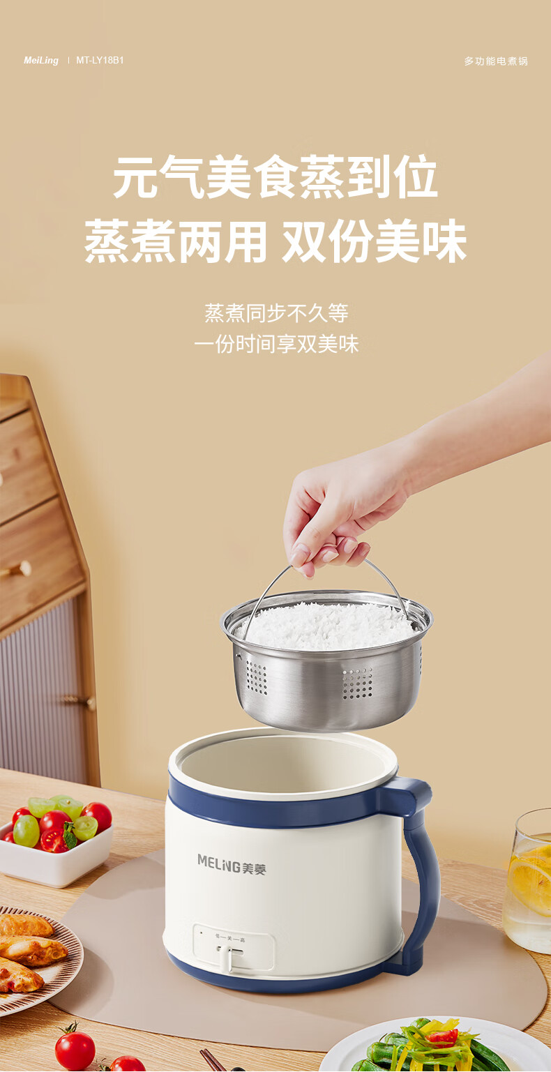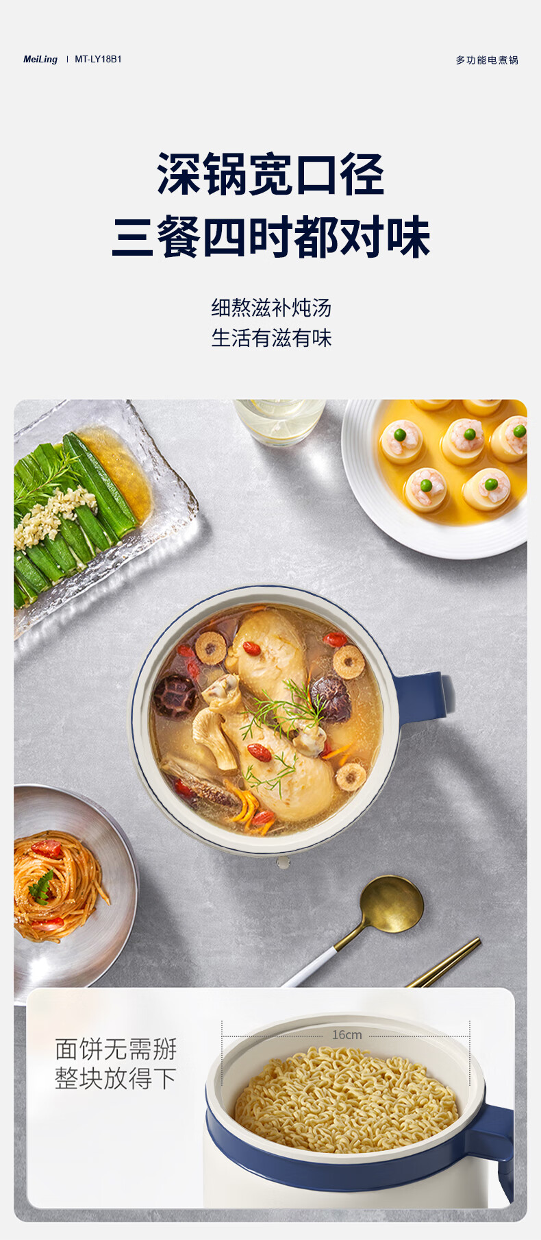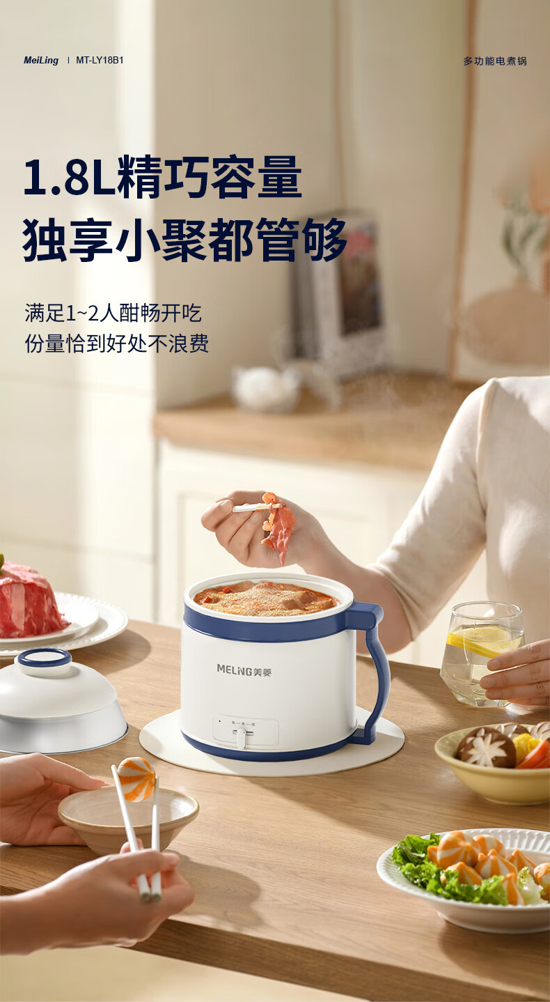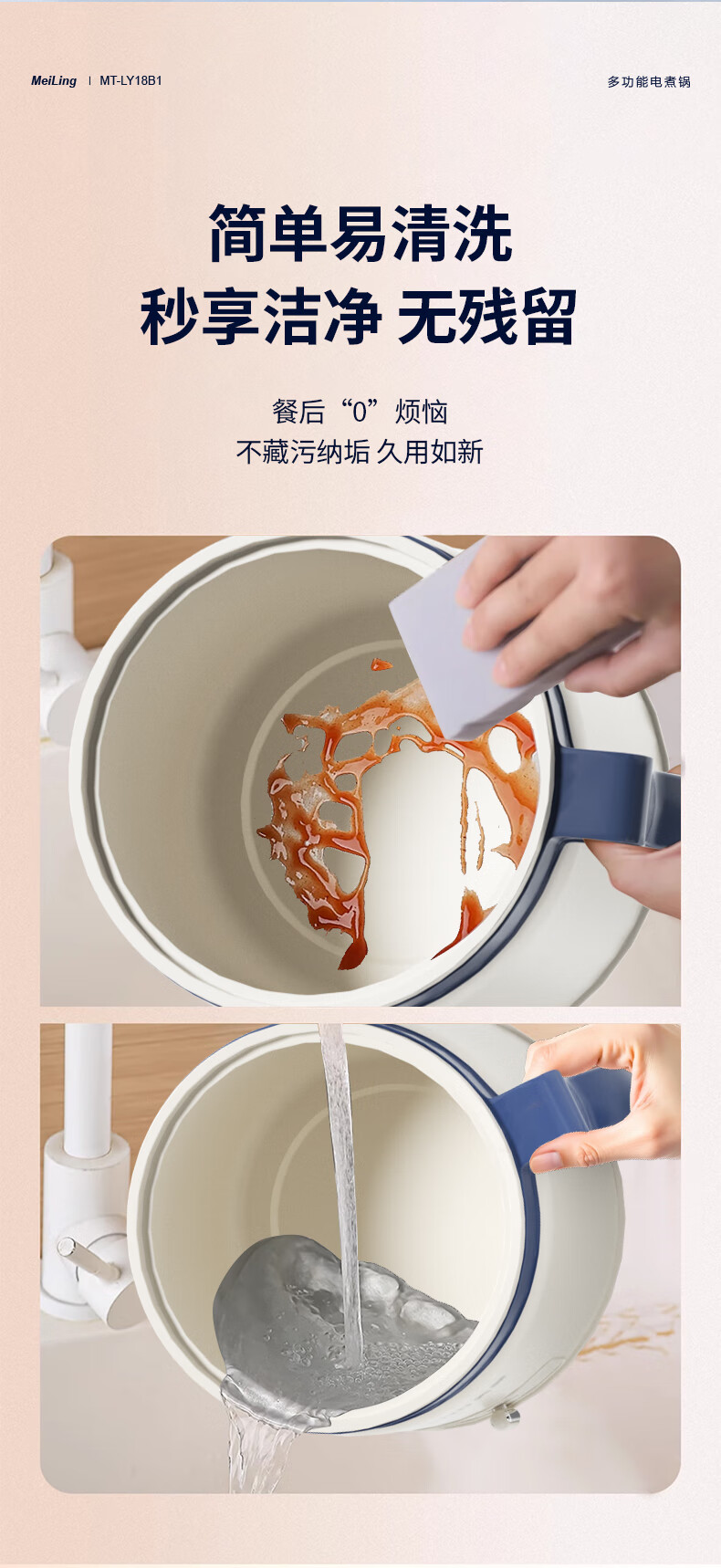 1.8L大容量, 陶瓷釉不沾涂层内胆 ,带沥糖锅;花样功能:蒸、煮、炖、涮、火锅等多种功能于一身;304不锈钢二合一盖碗,既是盖也是碗
