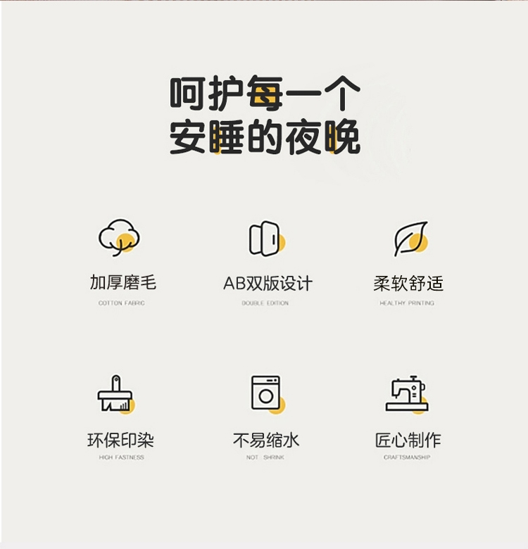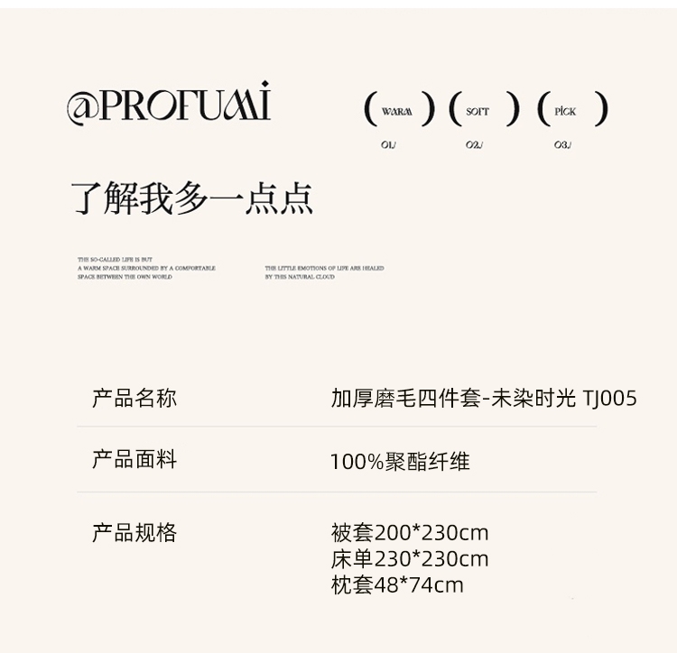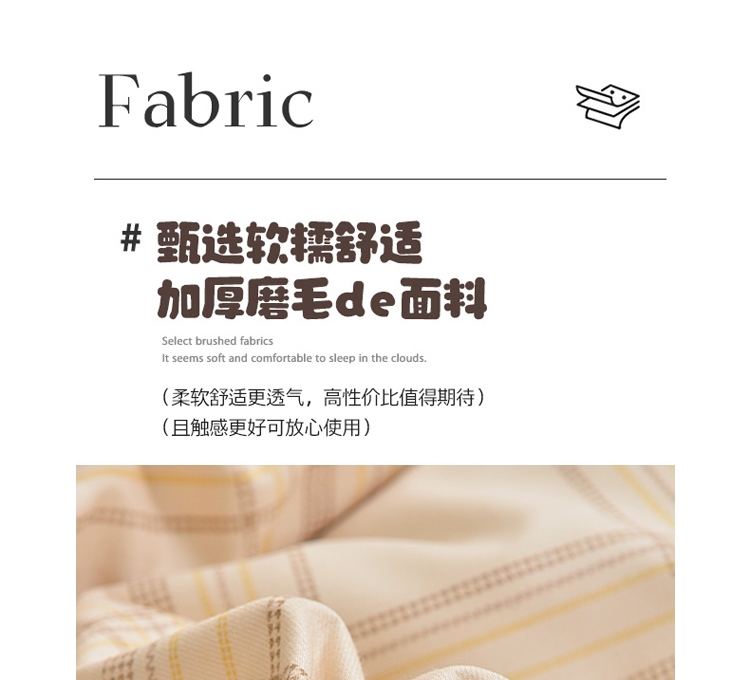 选聚酯纤维+立体磨毛工艺;触感蓬松绵软,贴身瞬间驱散寒意;抗皱耐磨,机洗不缩水、不褪色