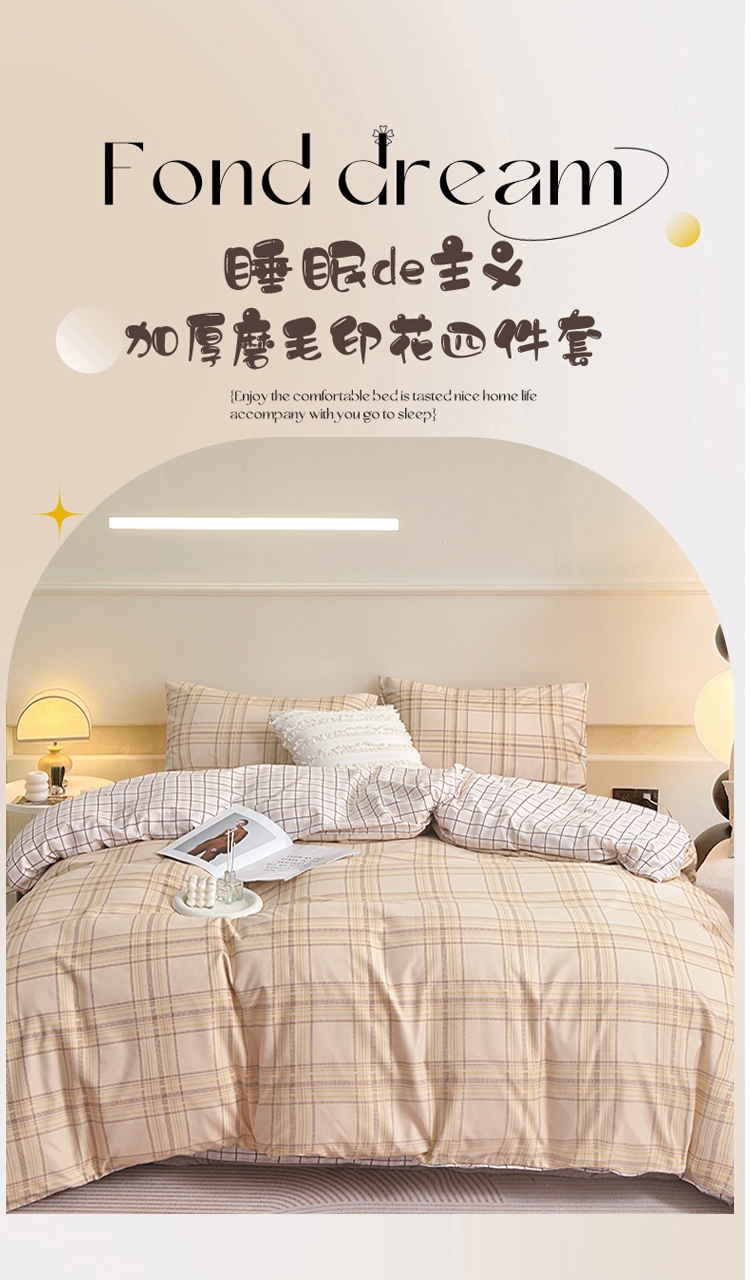 罗曼罗兰 加厚磨毛四件套未染时光801264