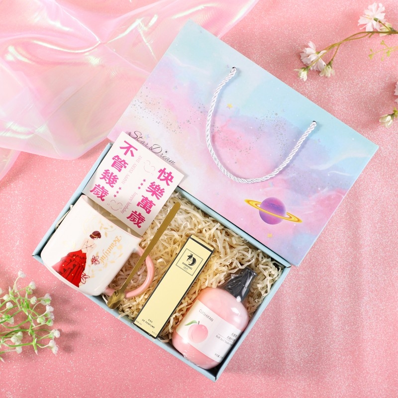 女神节限定星光礼盒|把温柔与精致捧在手心;星空质感礼盒自带仪式感,樱花护手霜、香水、女神杯;既有颜值又能高频使用,把关怀藏进细节里;樱花护手霜抚平干燥,香水留住清甜;女神杯喝出仪式感,实用又唯美