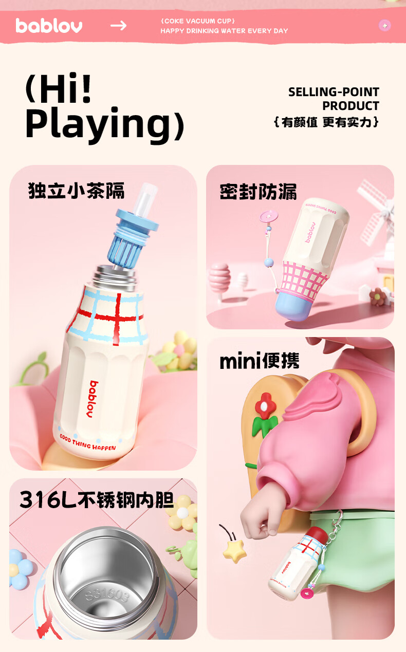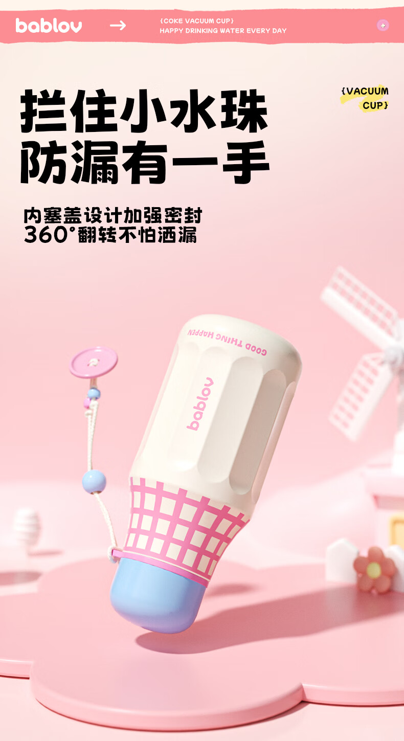 内塞盖设计加强密封;36O°翻转不怕洒漏;耐磨漆面不怕花脸