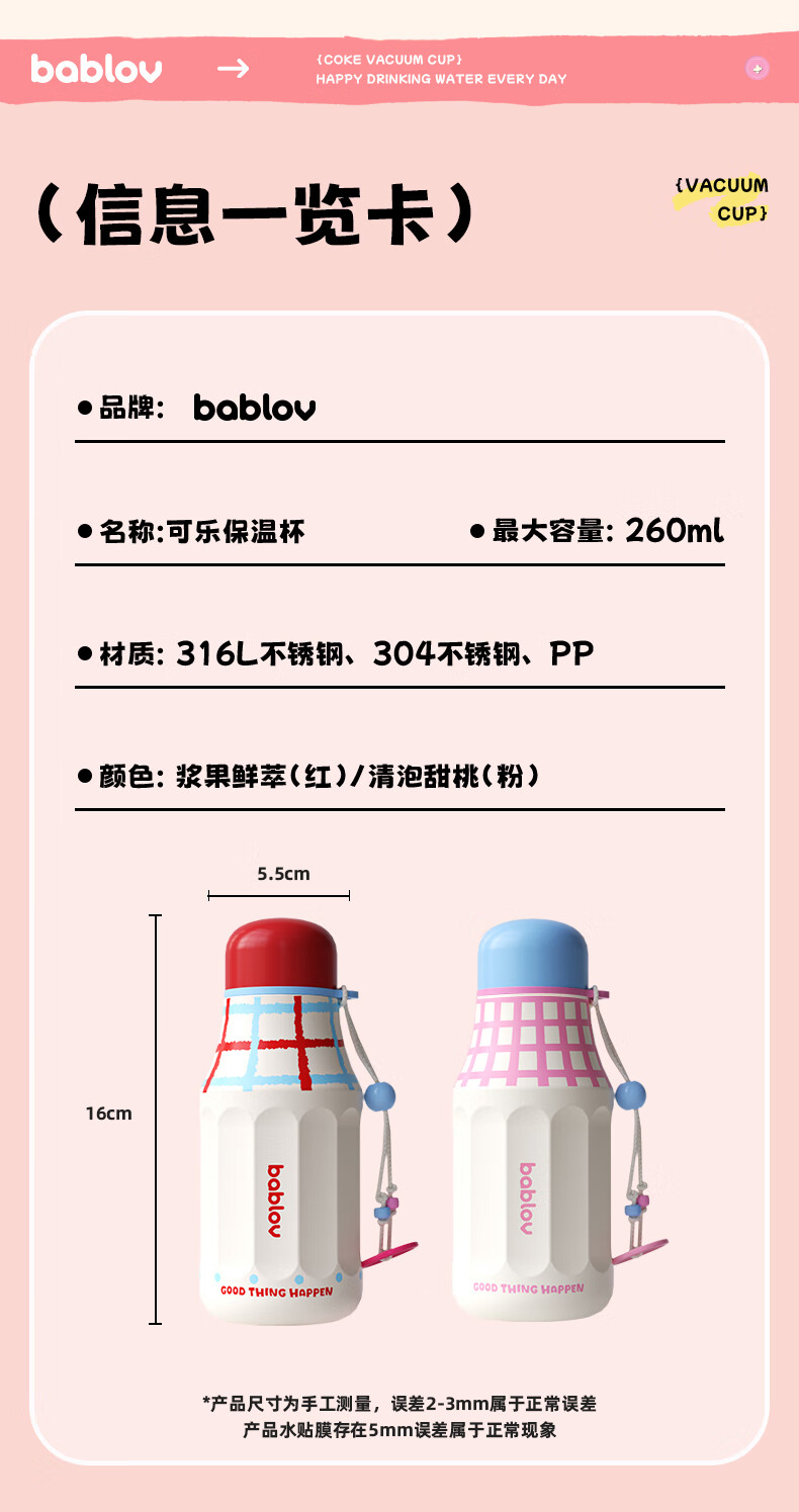 花伴森 可乐保温杯随行杯260mlMB6888B-XS /MB6888A-XS