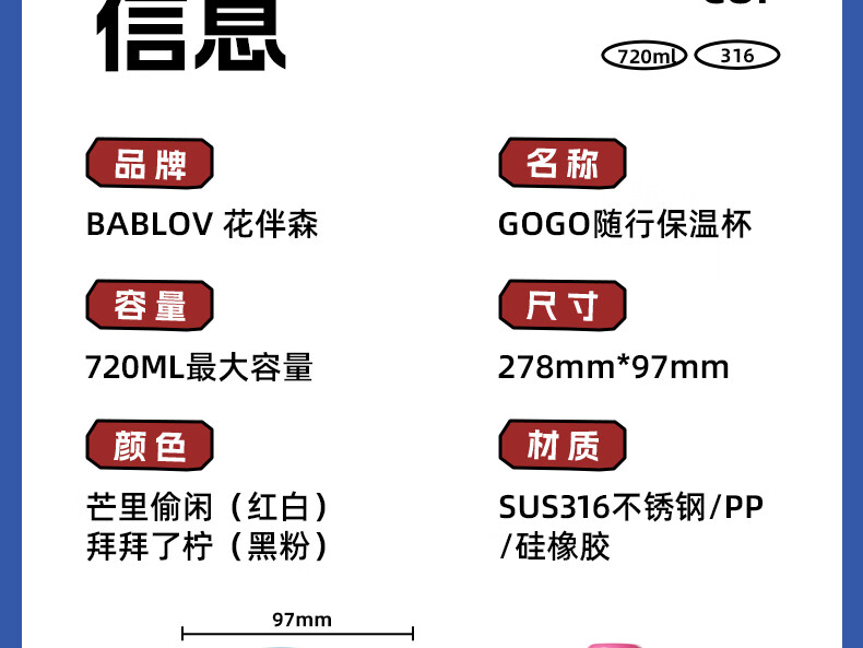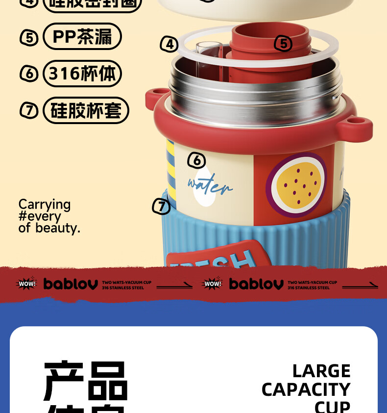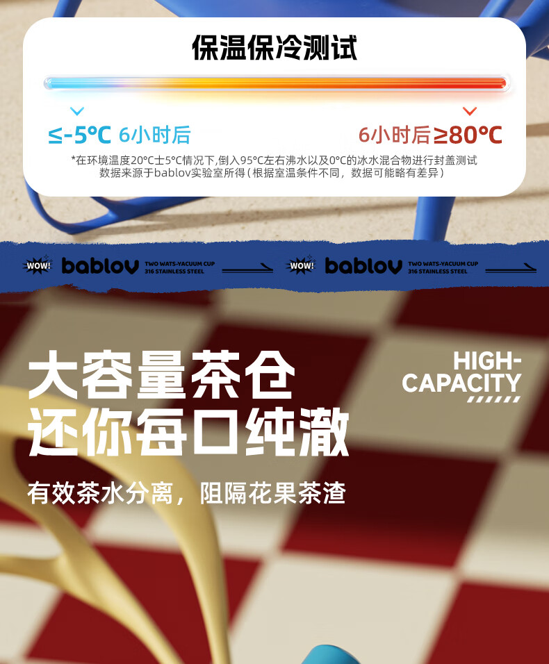 720ml大容量;食品级茶仓;6层琐温技术