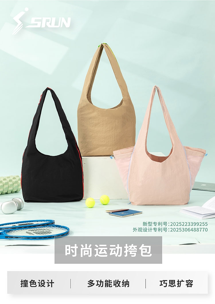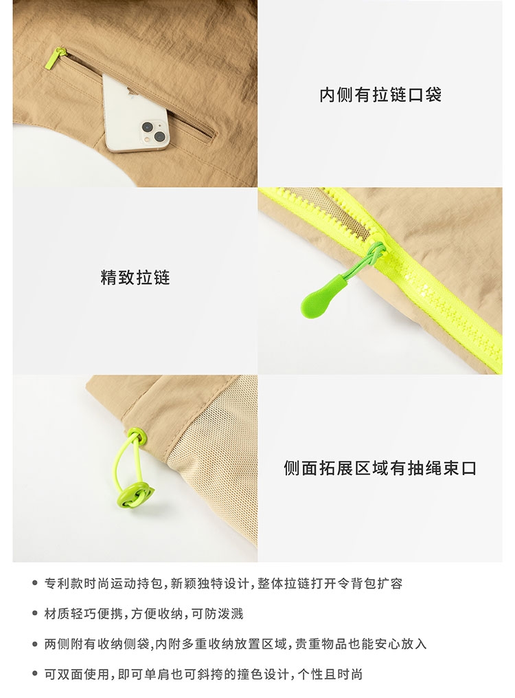 多功能 时尚 运动 挎包;内侧小物口袋 侧面扩展网袋;大容量 适用场地广泛