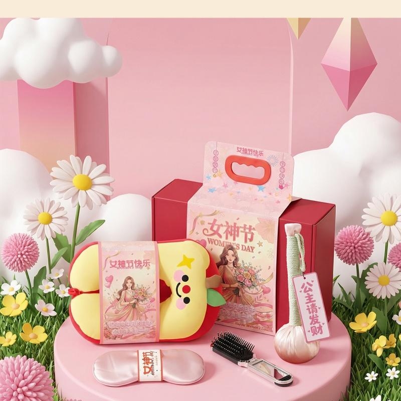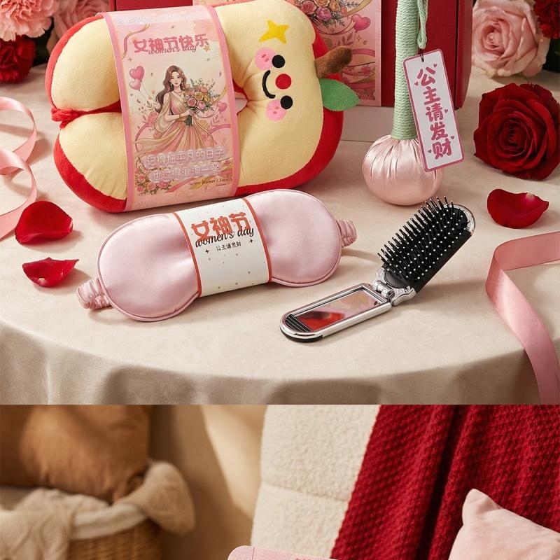 组合:眼罩、艾草养生锤、镜子气囊头梳、公主请发财香片香挂、记忆棉平平安安U型枕