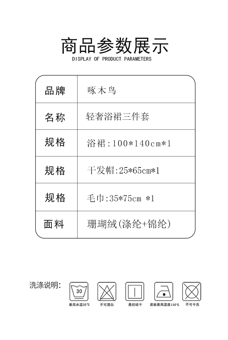 啄木鸟 轻奢浴裙三件套ZMN-MJ023
