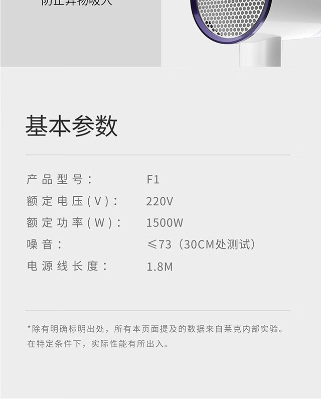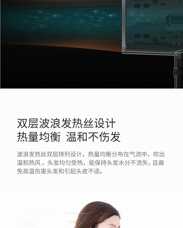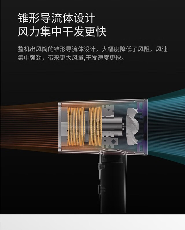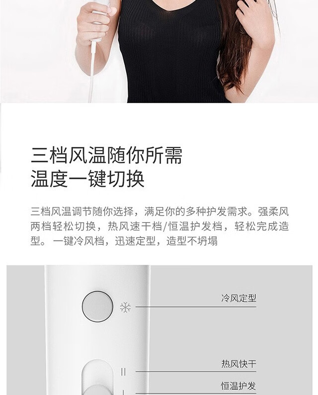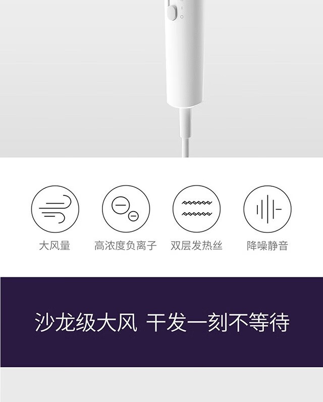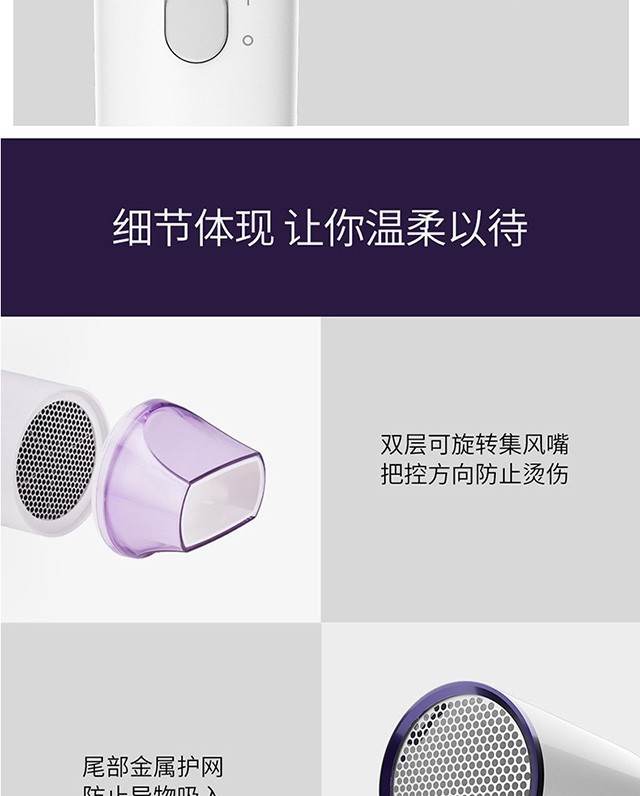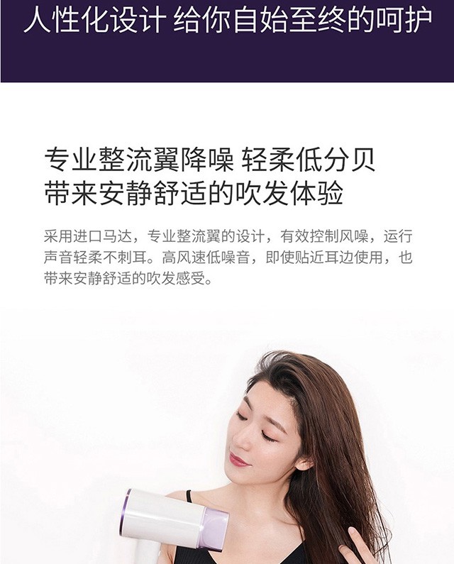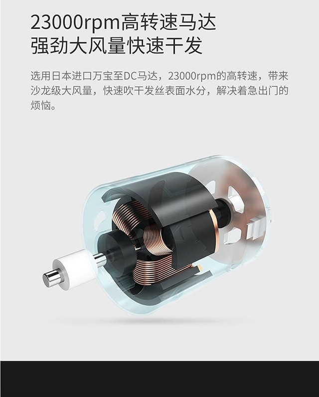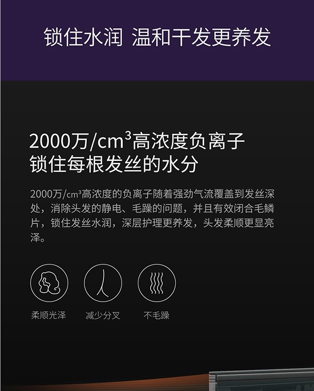 功率1500W,日本万宝至电机产生持久大风量快速干;高浓度负离子;高速吹风机